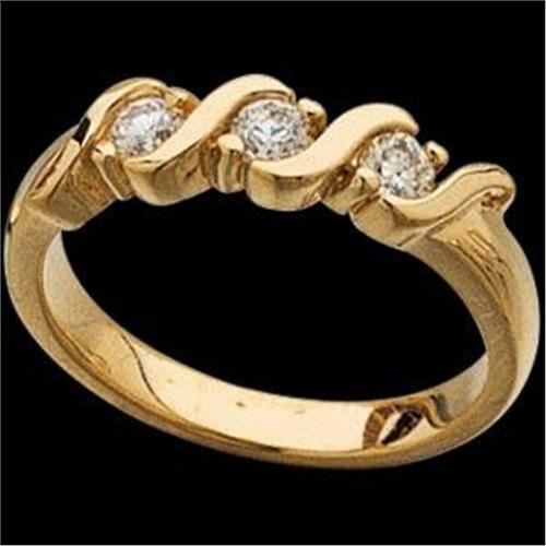 14k Yellow Gold '3 Stone DIAMOND WEDDING BAND featuring 3 SPARKLING