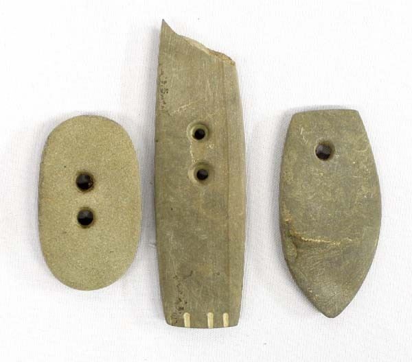 3 Stone Gorget Replicas, largest measures 3.5'' x 1.5'', one stone is broken off