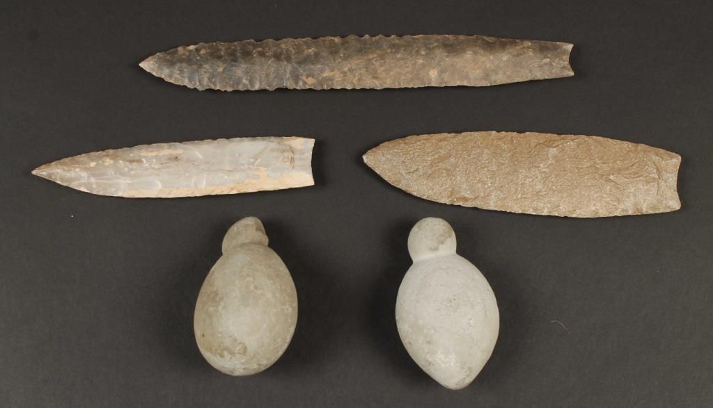 Unknown age or origins. Points 5" to 7-1/2" long. Weights about 2-3/4" long.
