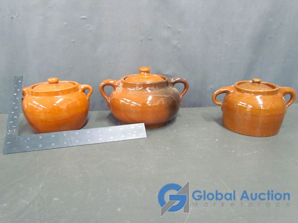 (3) Stoneware Bean Pots - Medalta, Alberta Potteries - Made in Canada - (3) Lids