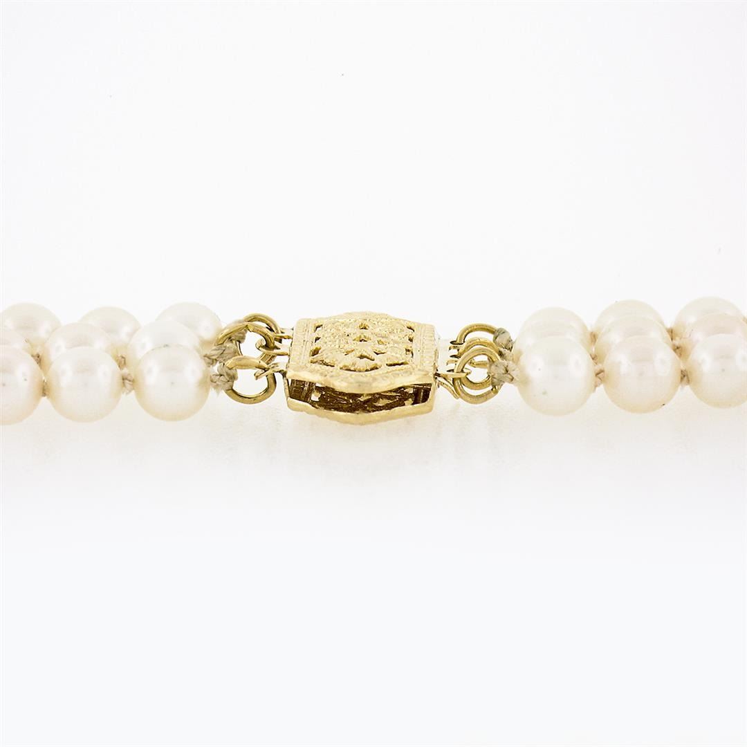 3 Strand 4-4.5mm Cultured Pearl Necklace w/ 14k Yellow Gold Wide Filigree Clasp