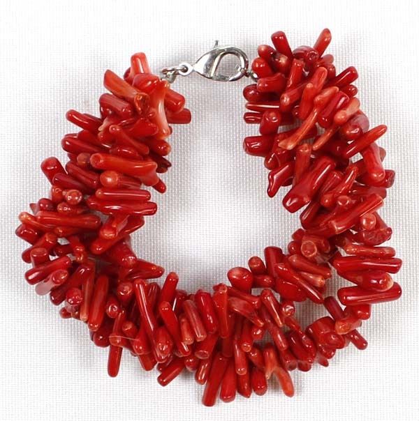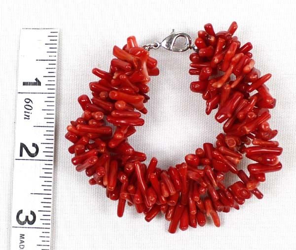 3 Strand Branch Coral Bracelet, measures 7.25''L end to end, lobster clasp closure