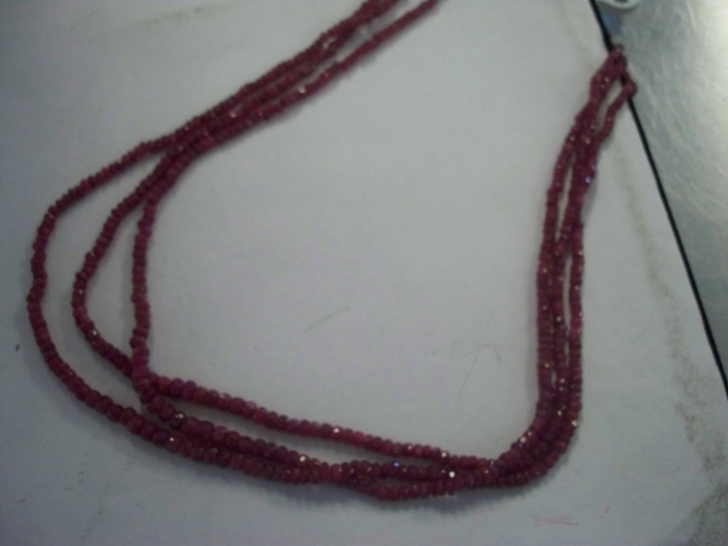3 Strand Genuine Ruby Necklace, Over 100 Carats low grade but real rubies