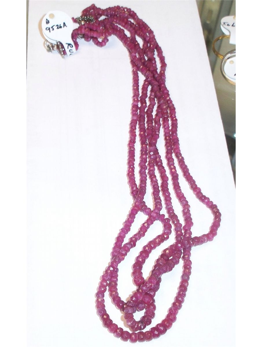 3 Strand Genuine Ruby Necklace, Over 100 Carats low grade but real rubies