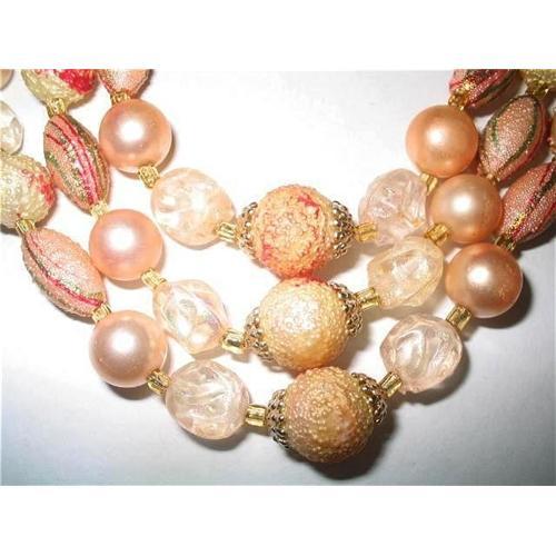 <tr><td>Title:3 Strand Pink Stippled Necklace & Earrings</td></tr>