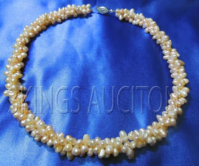 3-Strand Twisted Rice Pearl Necklace Brass Clasp Peach **|**|** 3-Strand Twisted Rice Pearl Necklace Brass Clasp Peach Philippines ; MSRP: $100