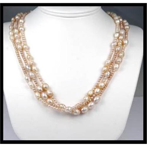 <tr><td>Title:3 Strands of White Faceted Fresh Water & Pink</td></tr>