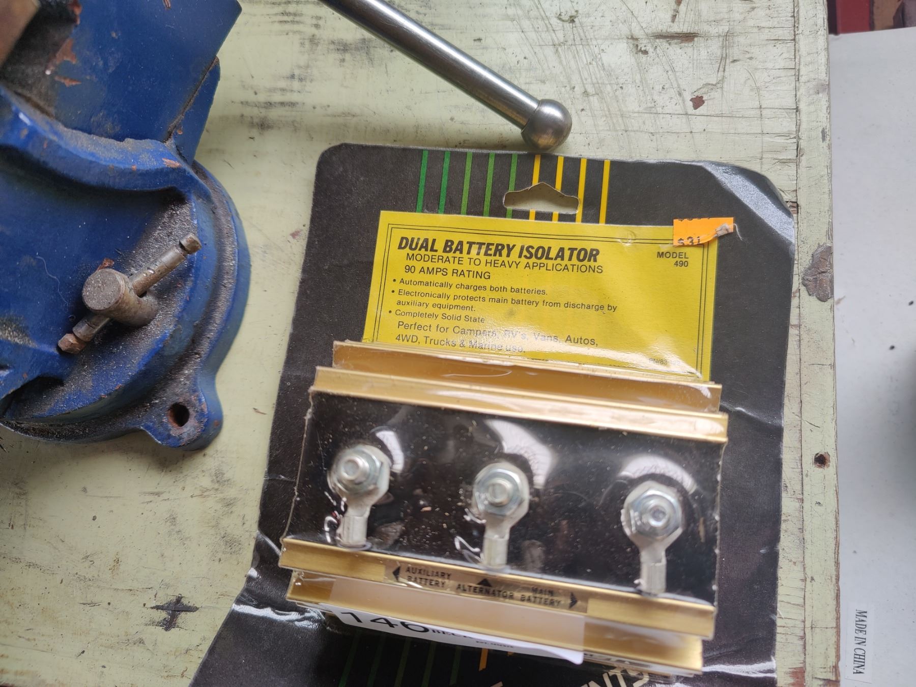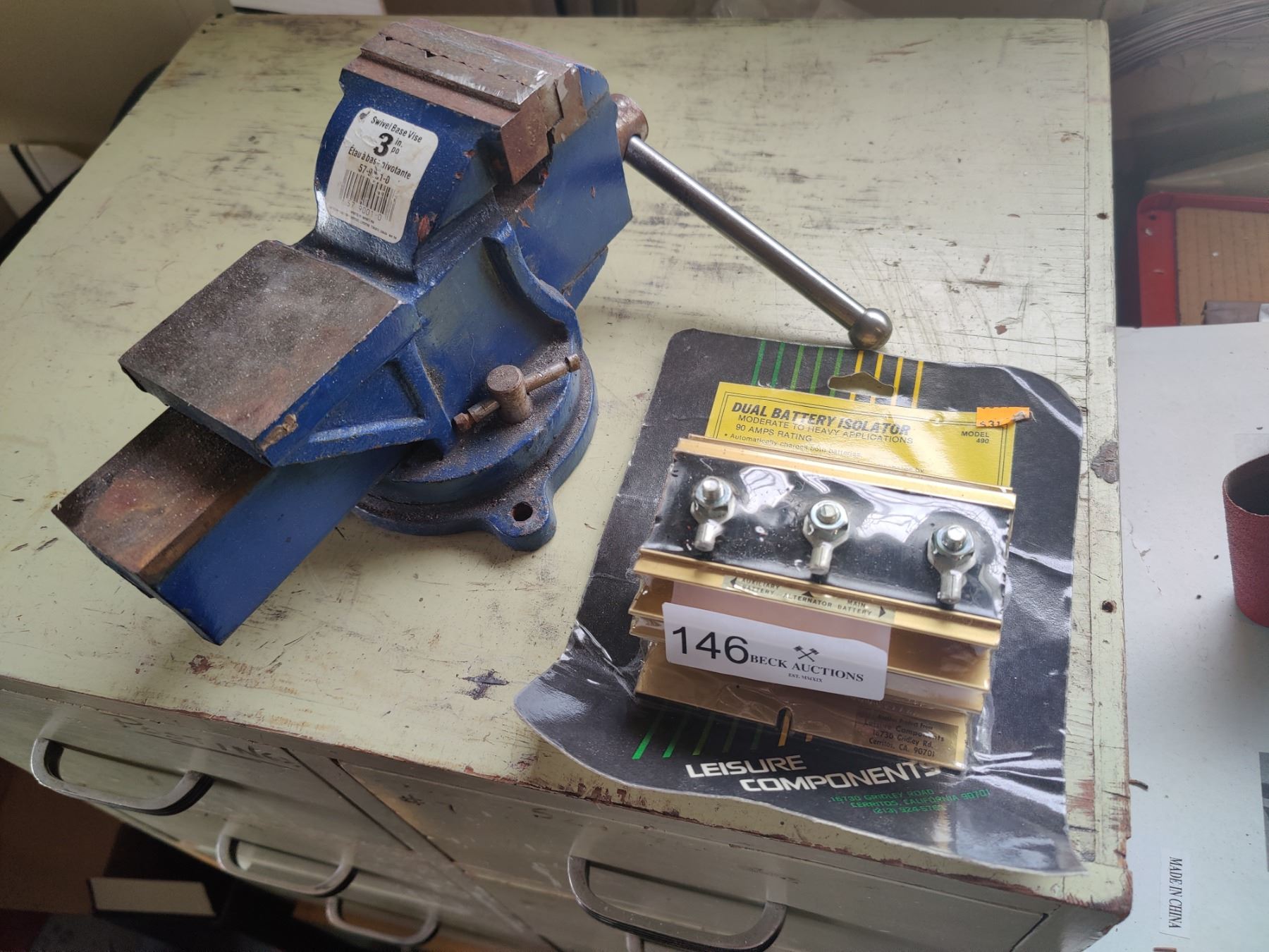 Dual Battery Isolator and 3" Swivel Base Vise.
