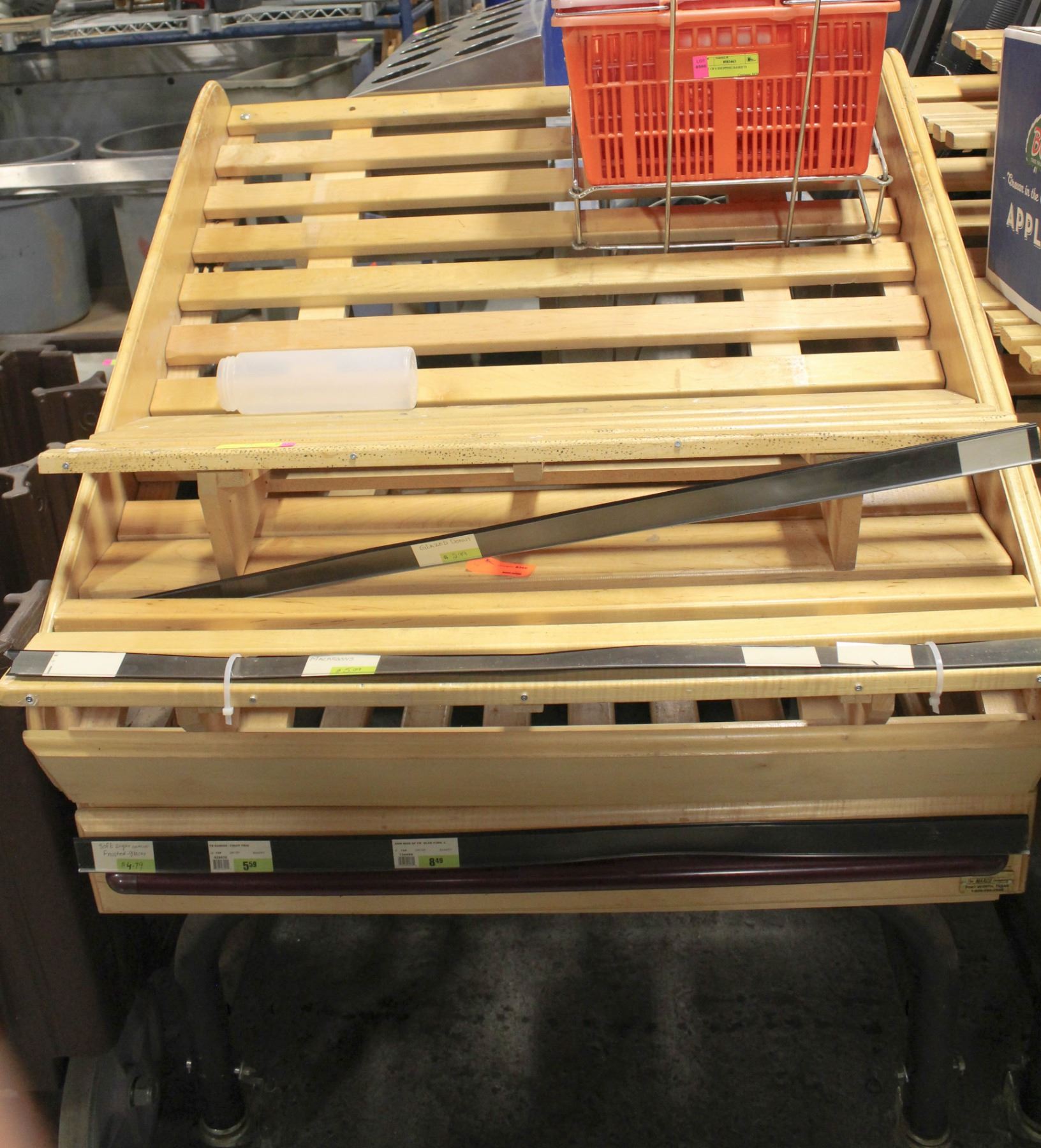 3 TEIR WOODEN GROCERY DISPLAY CART ON CASTORS. 38X38X48