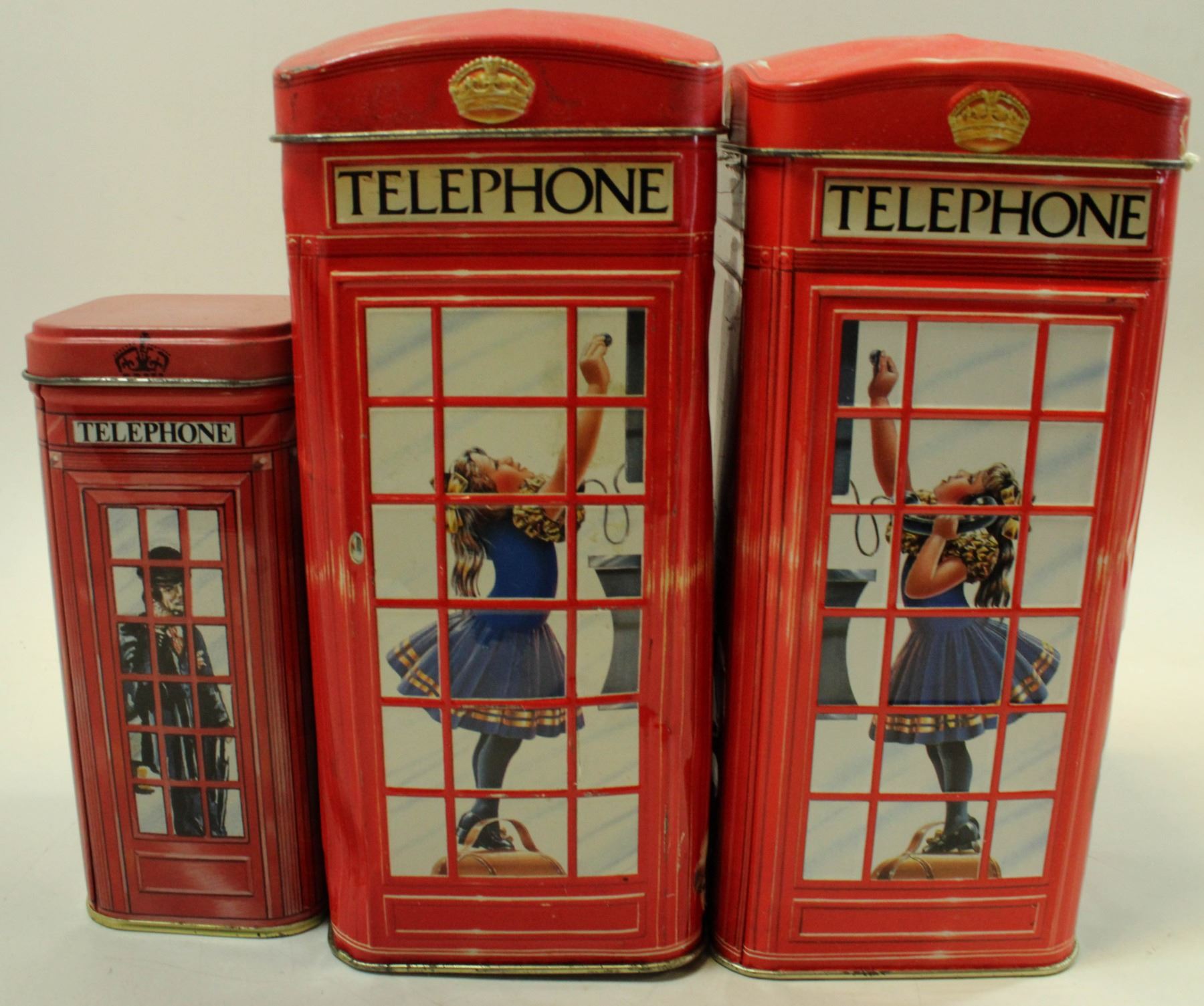 3 TELEPHONE BOOTH STYLE TINS 2 ARE BANKS