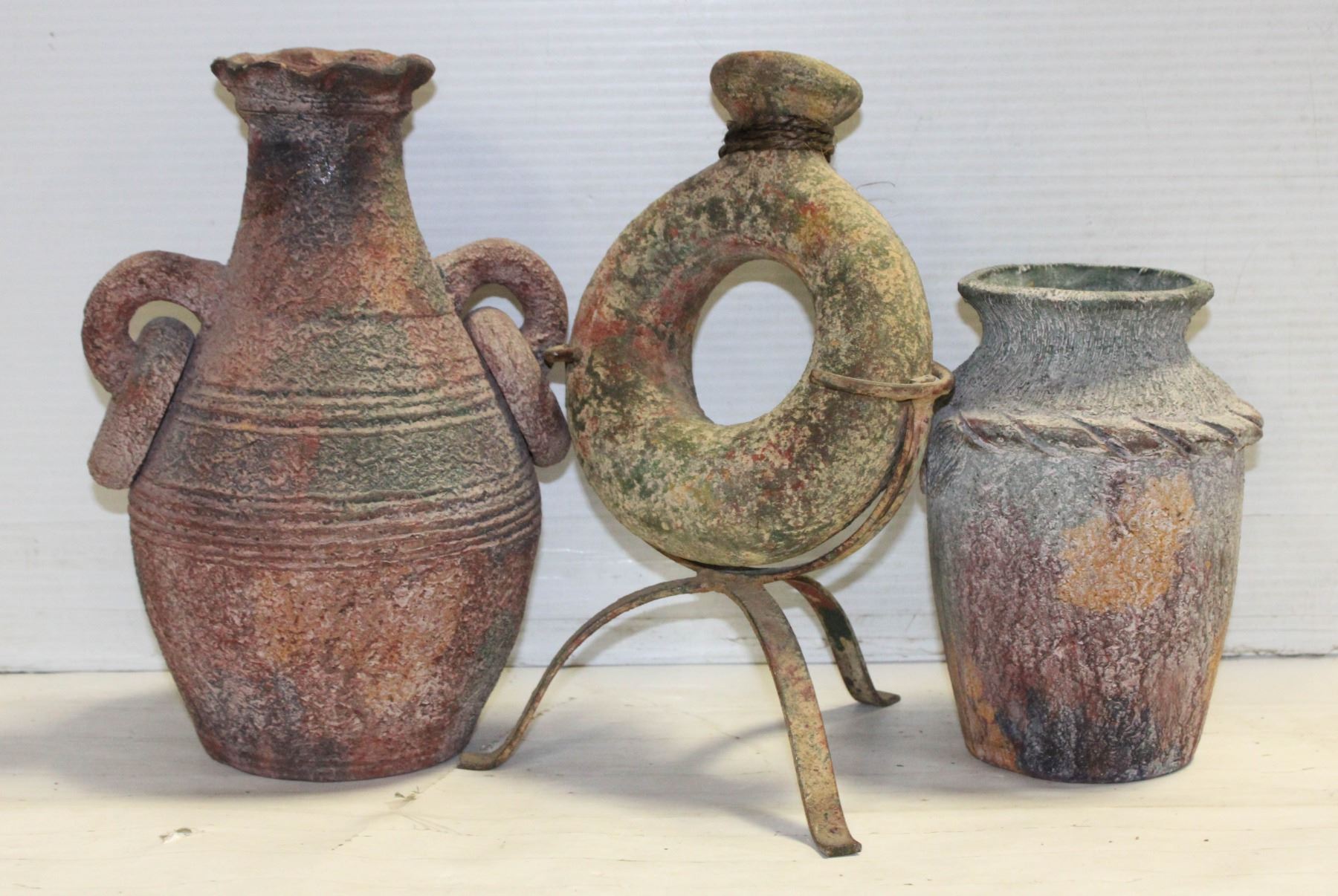 3 TERRACOTTA VASES, 1 W METAL STAND,1 W LOOPS