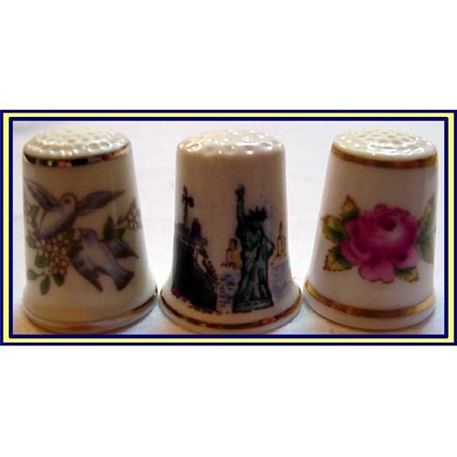 3 English porcelain thimbles. Two are from Royal Worcester and one from Harrods.