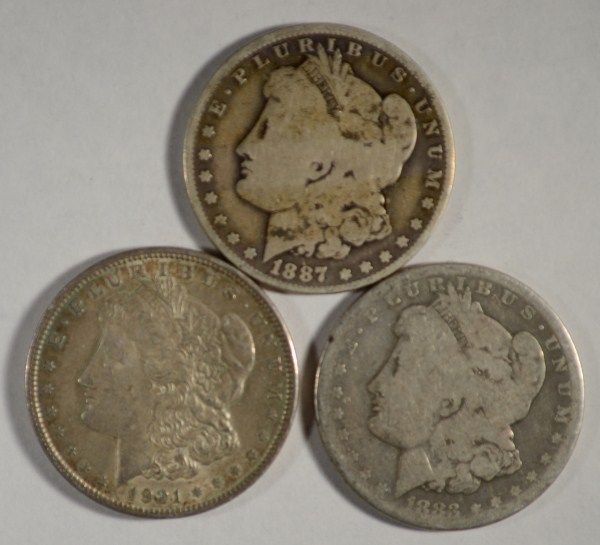 1883-S, 1887-0, AND 1921-P, A GREAT WAY TO OWN A PIECE OF HISTORY AND OWN SILVER, EST. $105.00 TO $115.00
