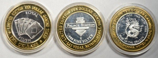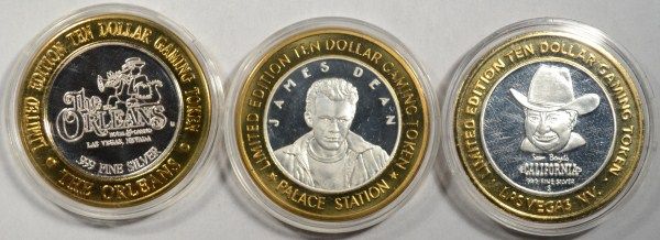 APPROX. 6/10 OUNCE .999 SILVER EACH, (THE ORLEANS) (PALACE STATION) (SAM BOYD.S CALIFORNIA) , EST, $75.00 TO $85.00