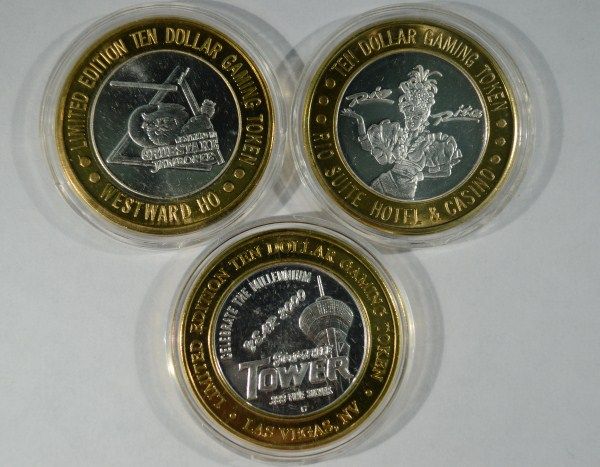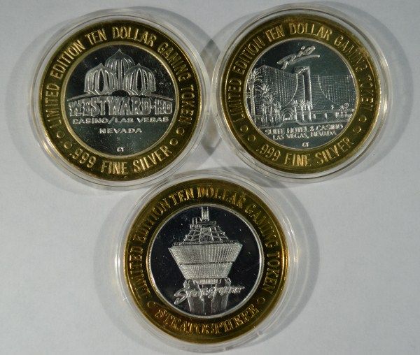 APPROX. 6/10 OUNCE .999 SILVER EACH, (THE STATOSPERE) (RIO) (WESTWARD HO) , EST, $75.00 TO $85.00