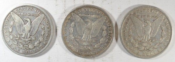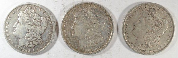 1884-O, 1885-P, AND 1885-O MORGAN SILVER DOLLARS, A GREAT WAY TO BUY SILVER AND OWN A PIECE OF AMERICAN HISTORY, EST. $105.00 TO $115.00