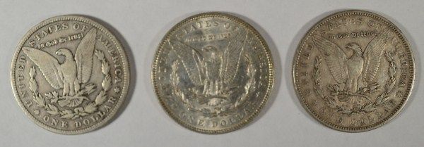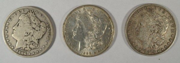 1878-P, 1888-P, AND 1896-P MORGAN SILVER DOLLARS, A GREAT WAY TO BUY SILVER AND OWN A PIECE OF AMERICAN HISTORY, EST. $105.00 TO $115.00