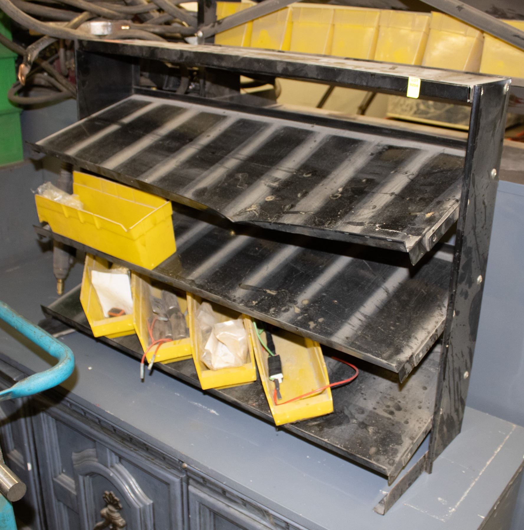 3-TIER METAL SHELVING WITH PART BINS & CONTENTS