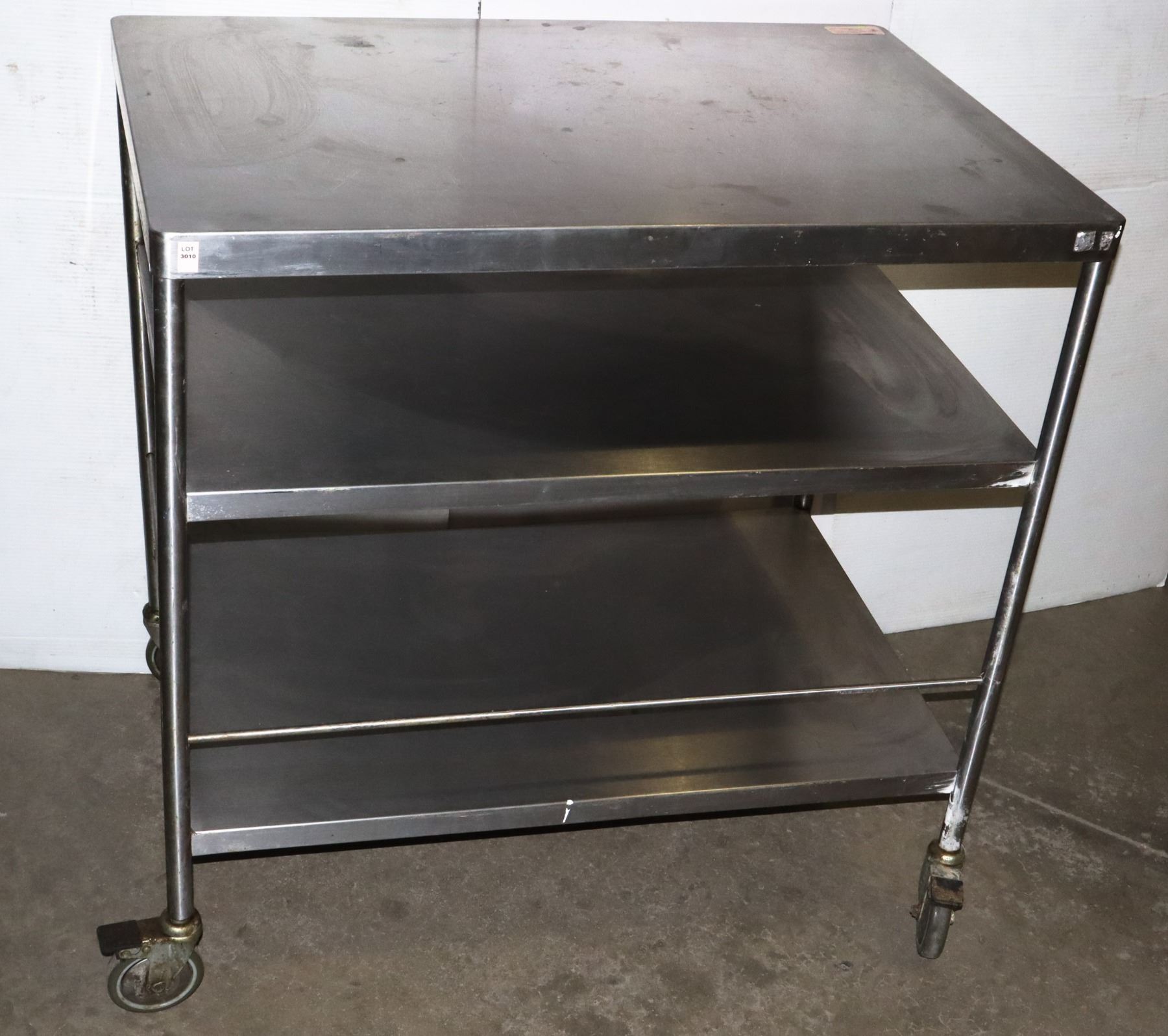 SHELVES NEED TIGHTENING, MAKES UNIT WOBLY CURRENTLY. TOP APPROX 22.5" X 34.5", HEIGHT APPROX 34"