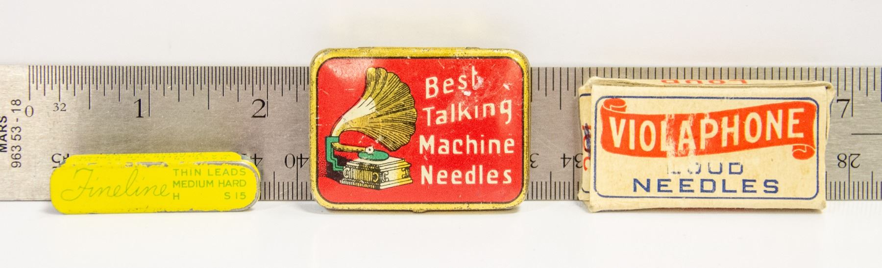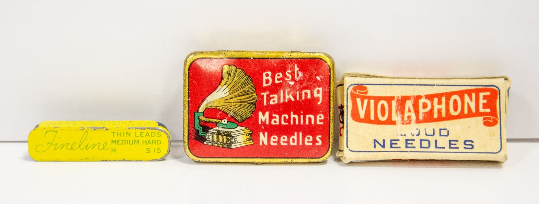 3 TIN + PAPER CONTAINERS W/ SOME NEEDLE TIPS