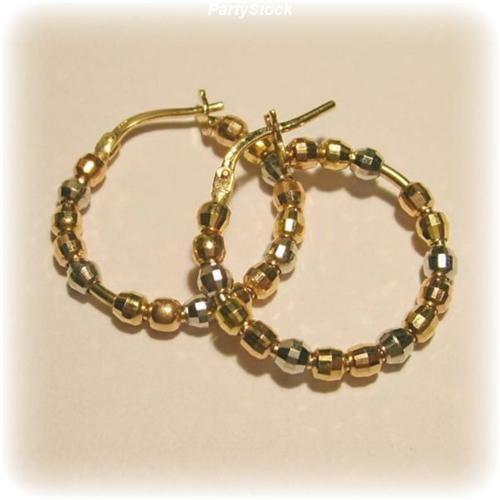 GORGEOUS BEADS OF 3 TONES OF GOLD: YELLOW, WHITE AND ROSE, CREATE THESE SPARKLING, RICH HOOP EARRINGS! BOLD AND BEAUTIFUL!