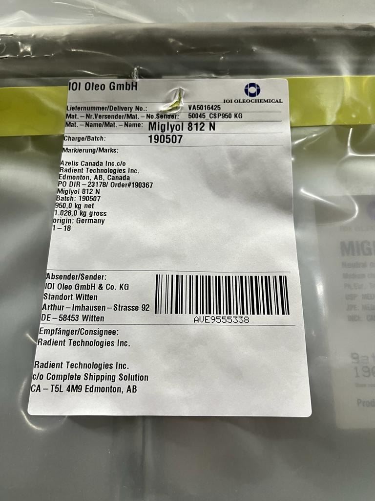 SALE OF GOODS PURSUANT TO WAREHOUSEMEN'S LIEN ACT- ATTACHED A WEBSITE WHICH INCLUDES SOME INFORMATION ABOUT POTENTIAL APPLICATIONS FOR MIGLYOL 812N MIGLYOL 812 N | AZELIS CANADA INNOVATION THROUGH FORMULATION. https://azeliscanada.com/product/miglyol-812-n-phm /