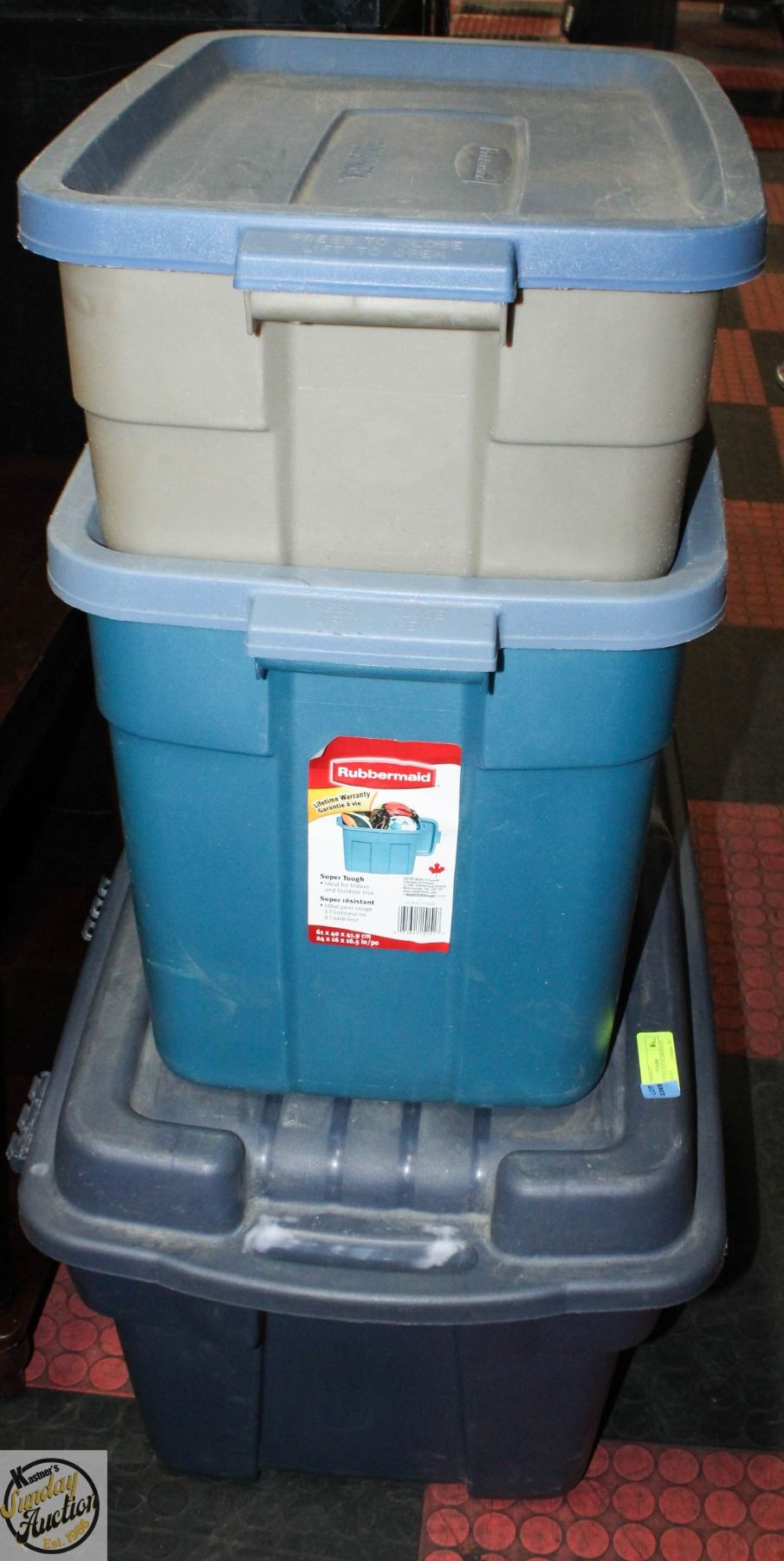 3 TOTES WITH LIDS RUBBERMAID ROUGHNECKS