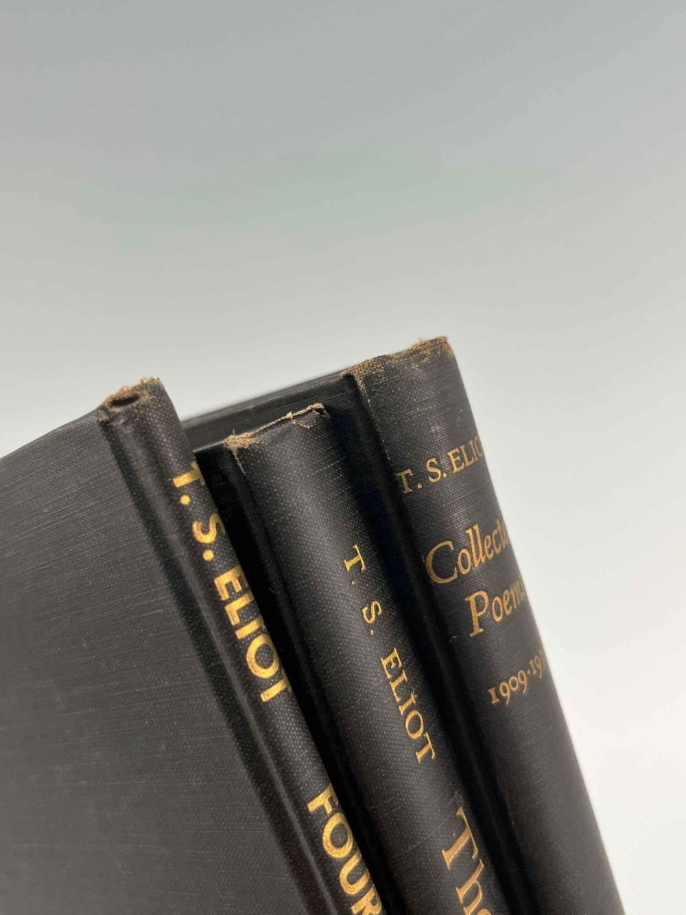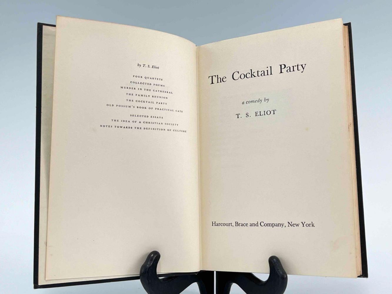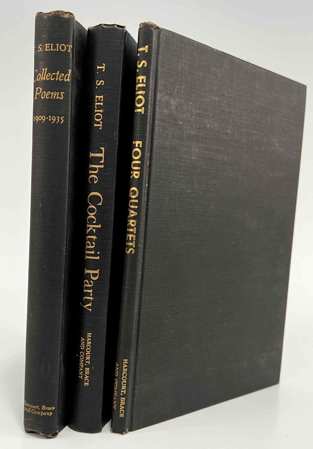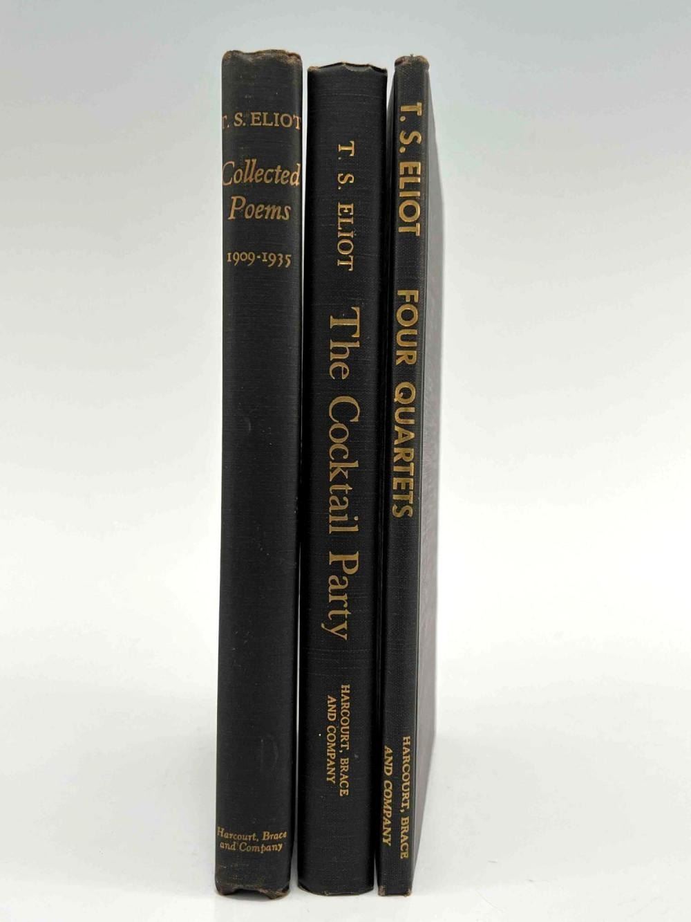 3 TS Eliot Books. The Cocktail Party, Collected Poems 1999-1935, Four Quartets. Harcourt, Brace And Company, New York. Collected Poems Copyright 1930, Four Quartets Copyright 1943, The Cocktail Party Copyright 1950. Largest Item Approximately 8.675 L x 5.875 W x 0.75 D Inches. Smallest Item Approximately 8.625 L x 5.75 W x 0.75 D Inches.