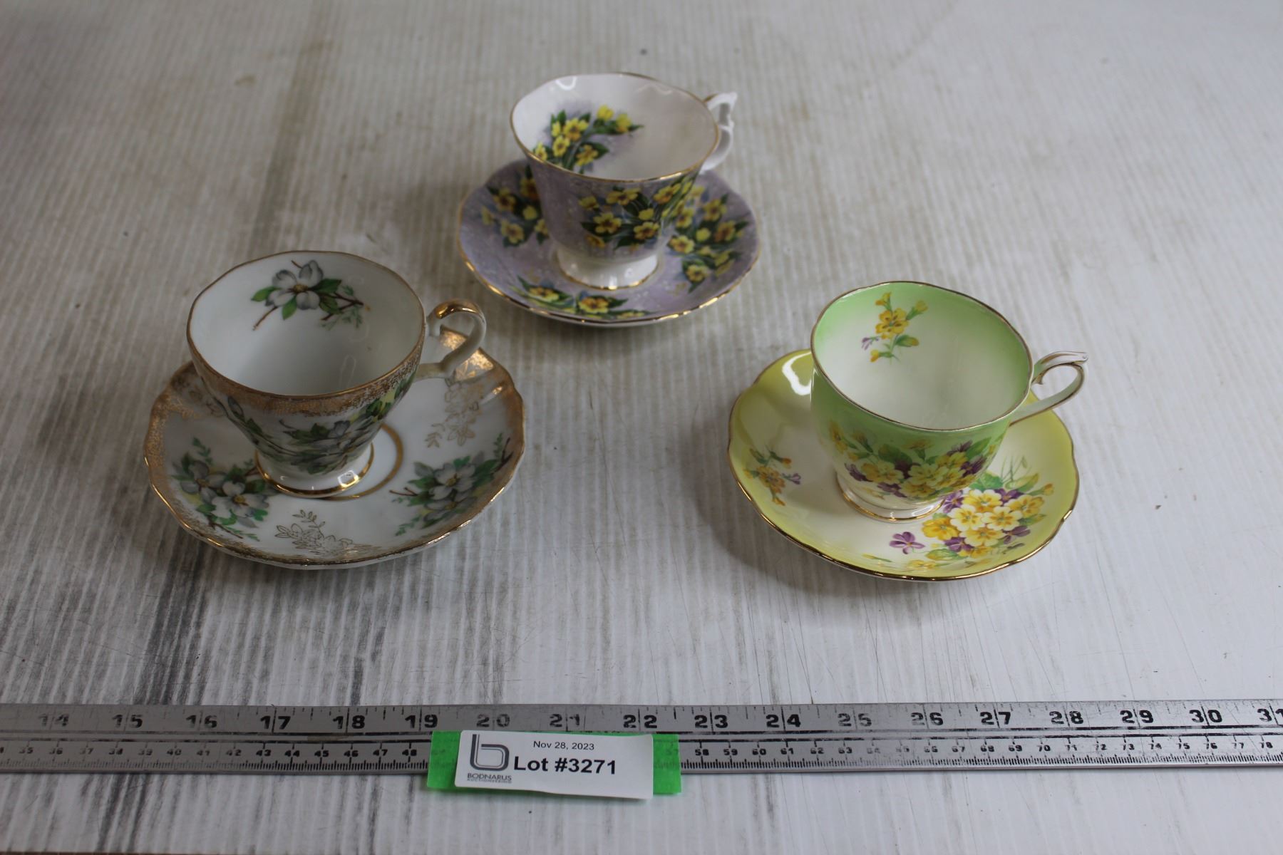 (3) Teacups with Matching Saucers - (2) are Royal Albert