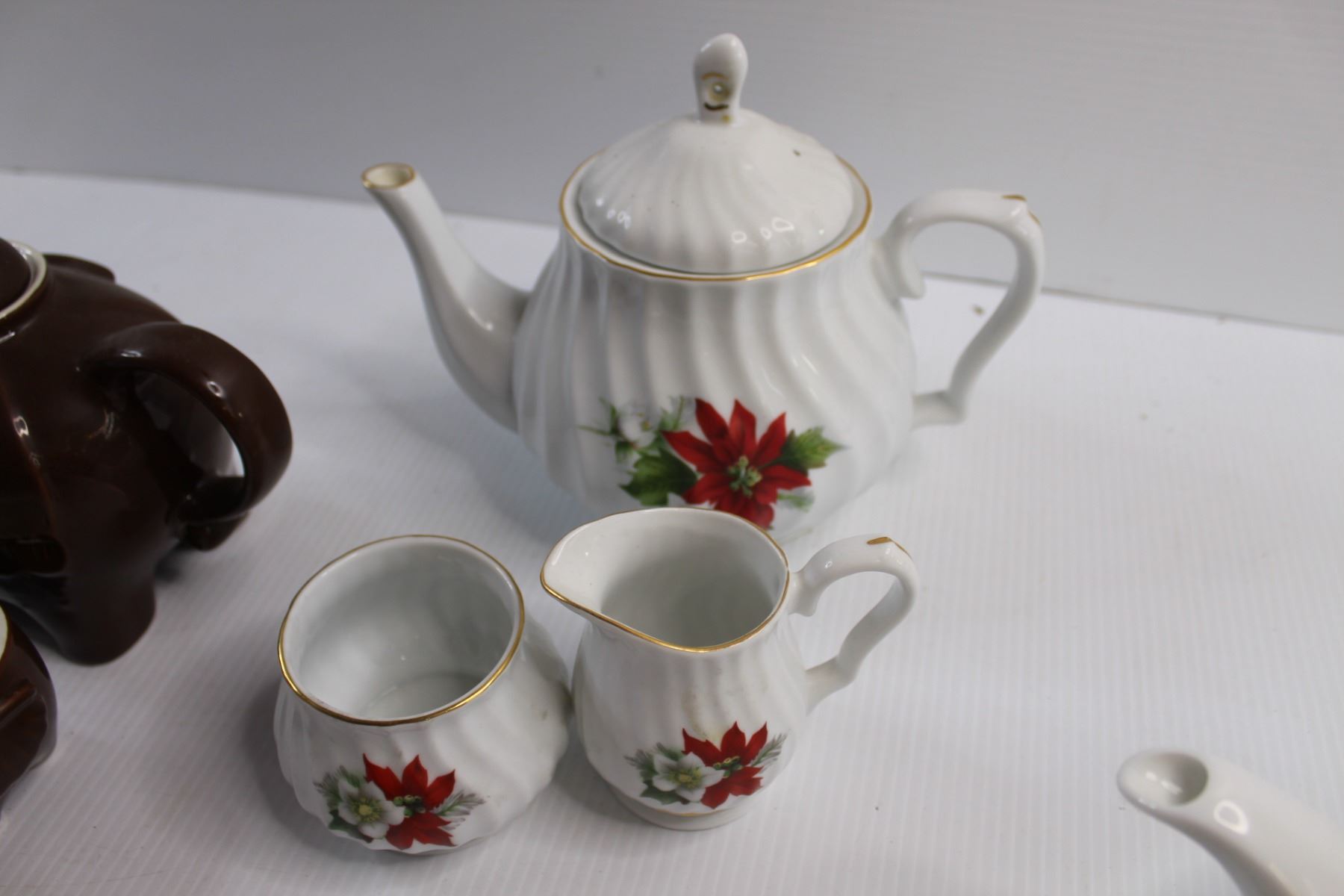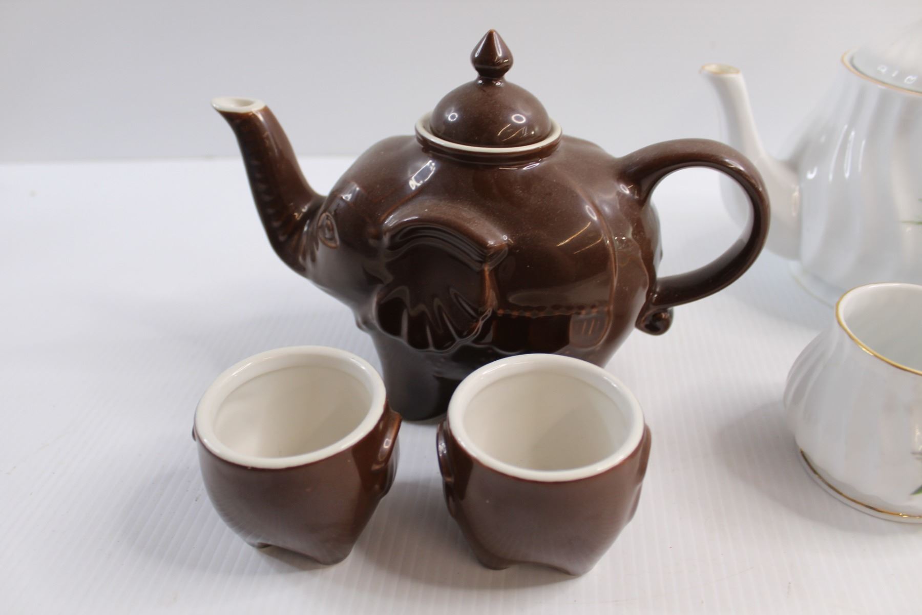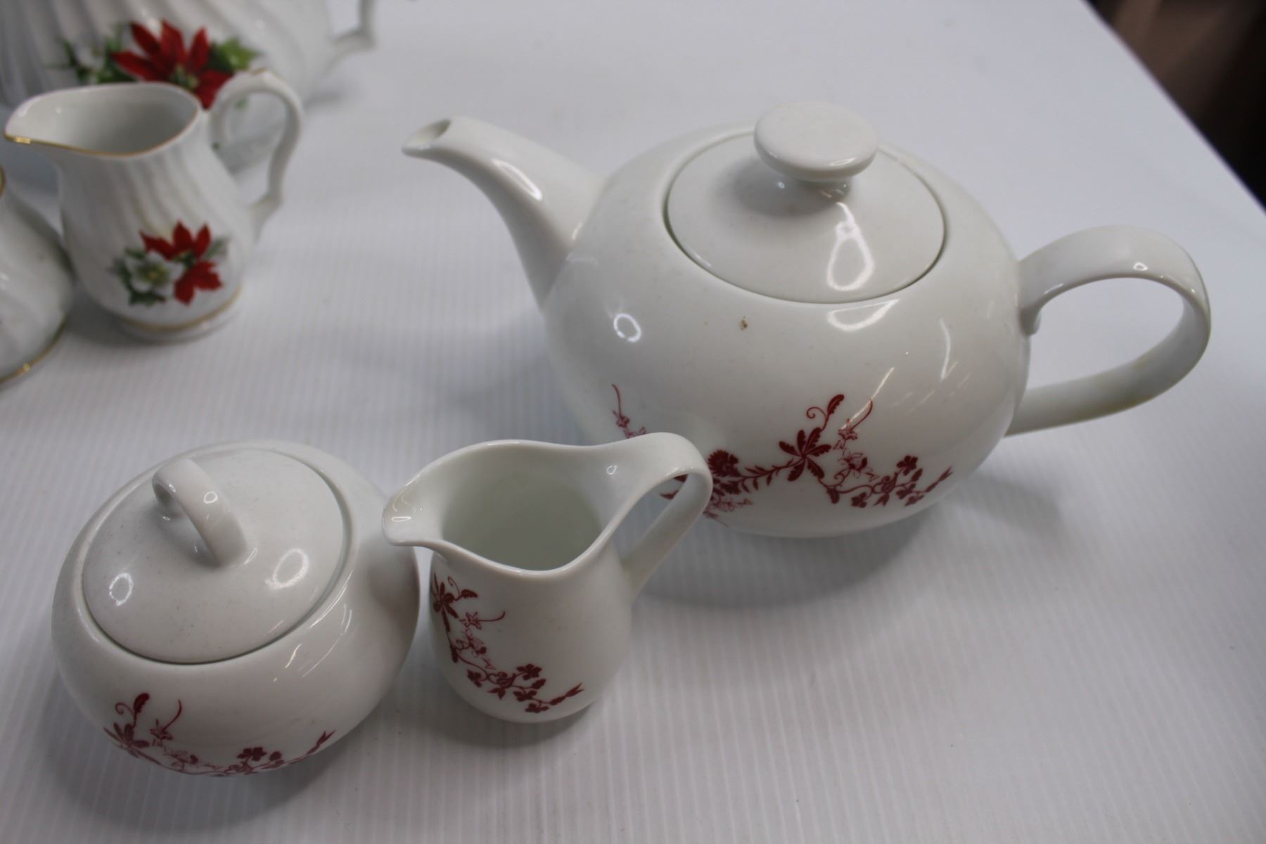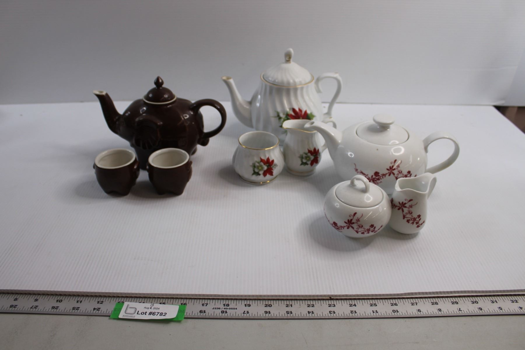 (3) Teapots with Matching Cream and Sugars/Matching Cups