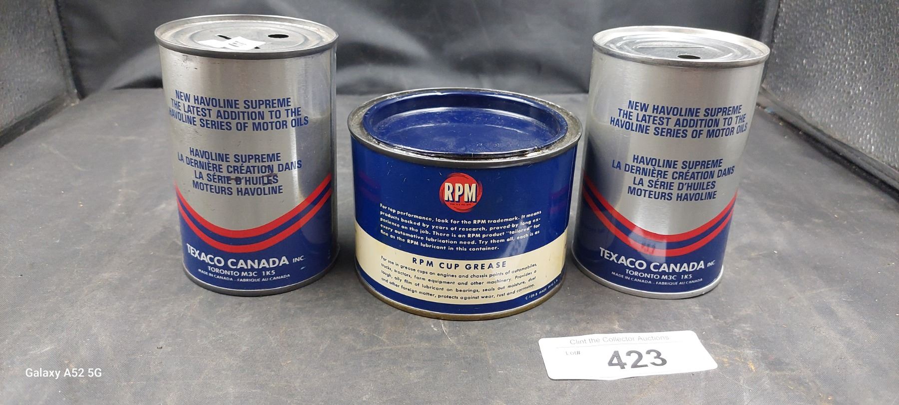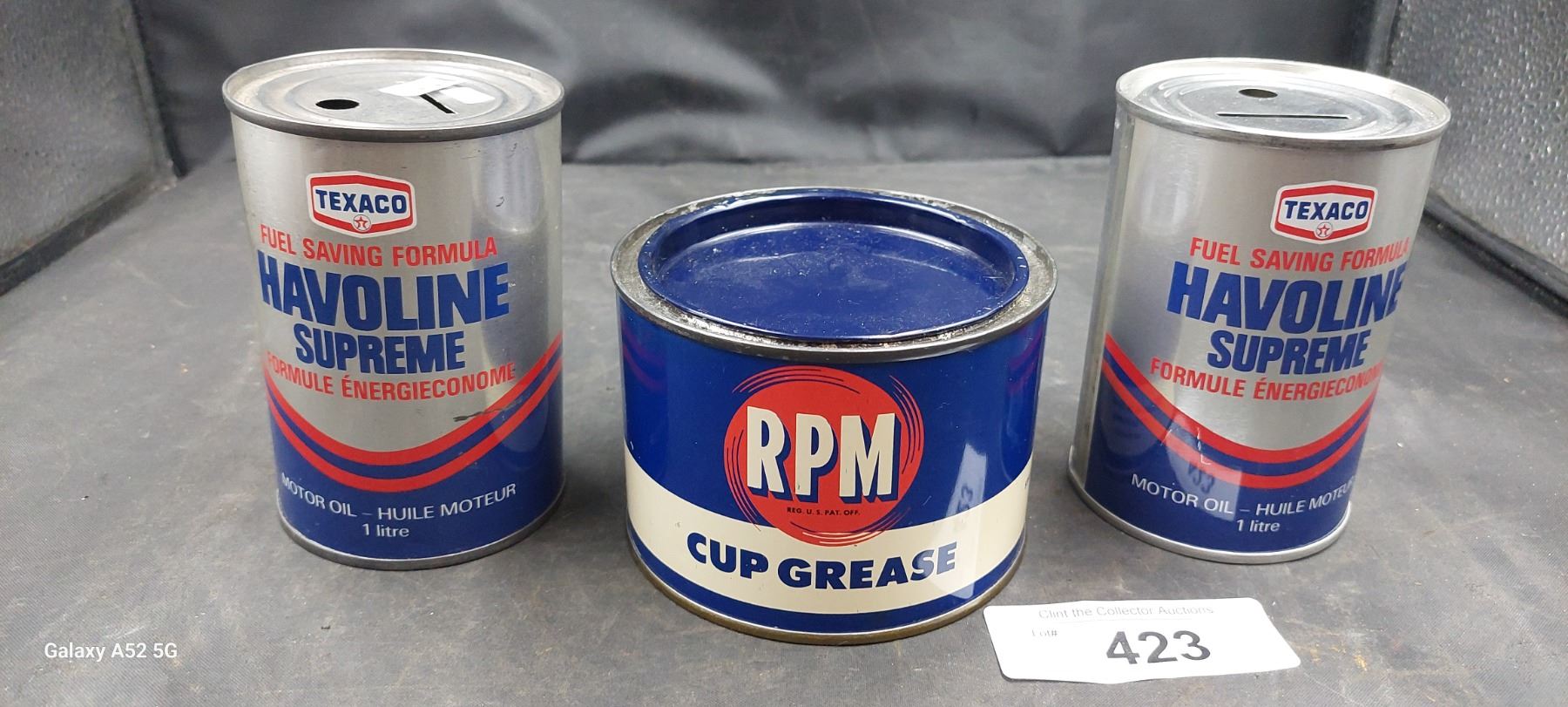 3 Texaco and RPM, 2 coin banks and 1 1lb grease can