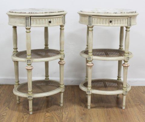 With 2 cane shelves. Approx. 32 1/2" H, top approx. 20" x 15". Marbles repaired.