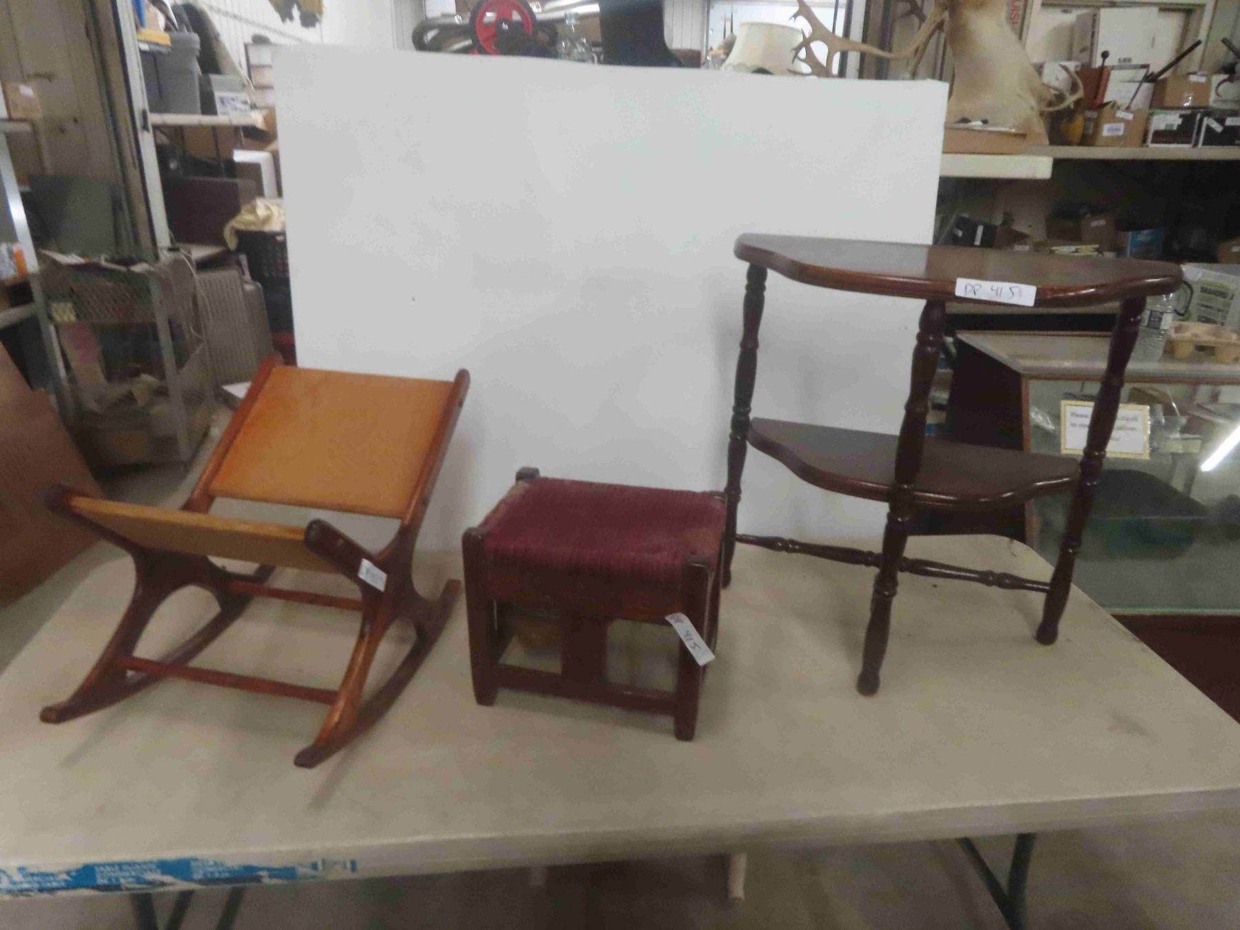 3 Tier Walnut Stand 25'' x 24'' x 12'' , Childrens Rocker, Ottoman