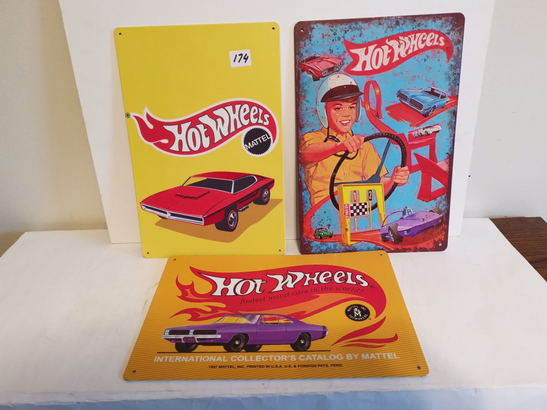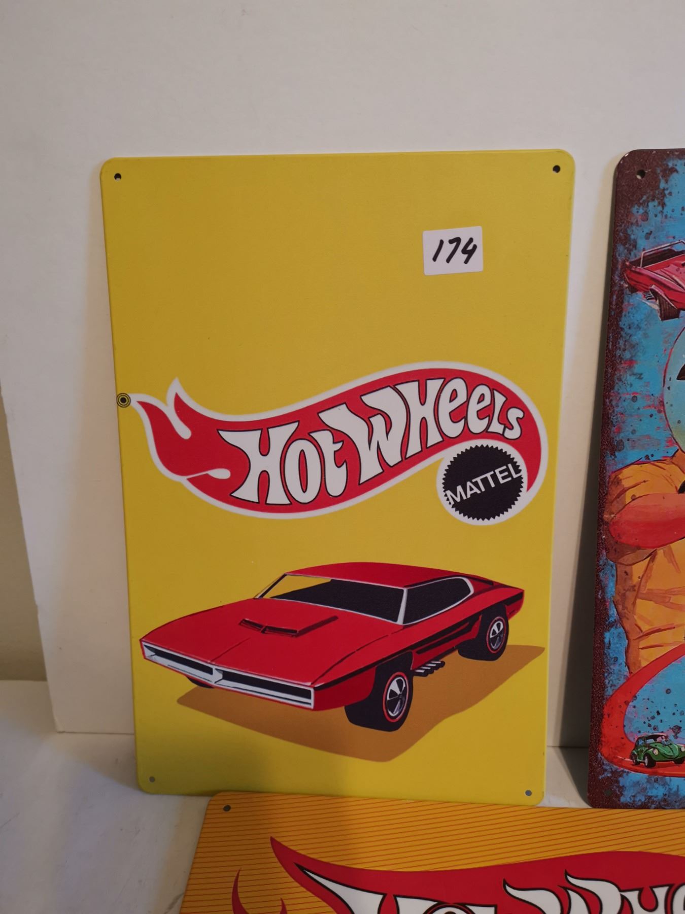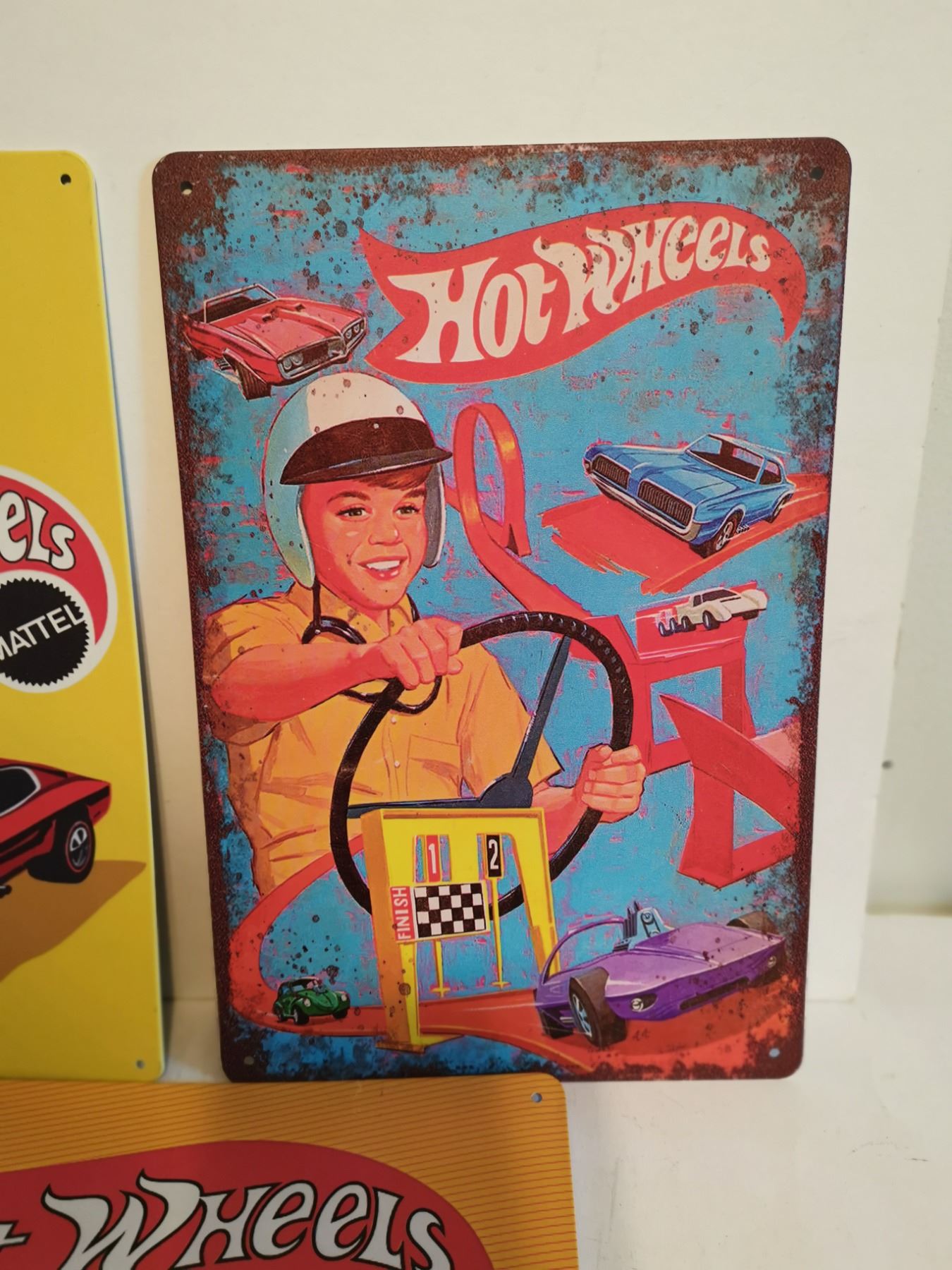3 Tin Hotwheels Signs 7.5" x 11.5"