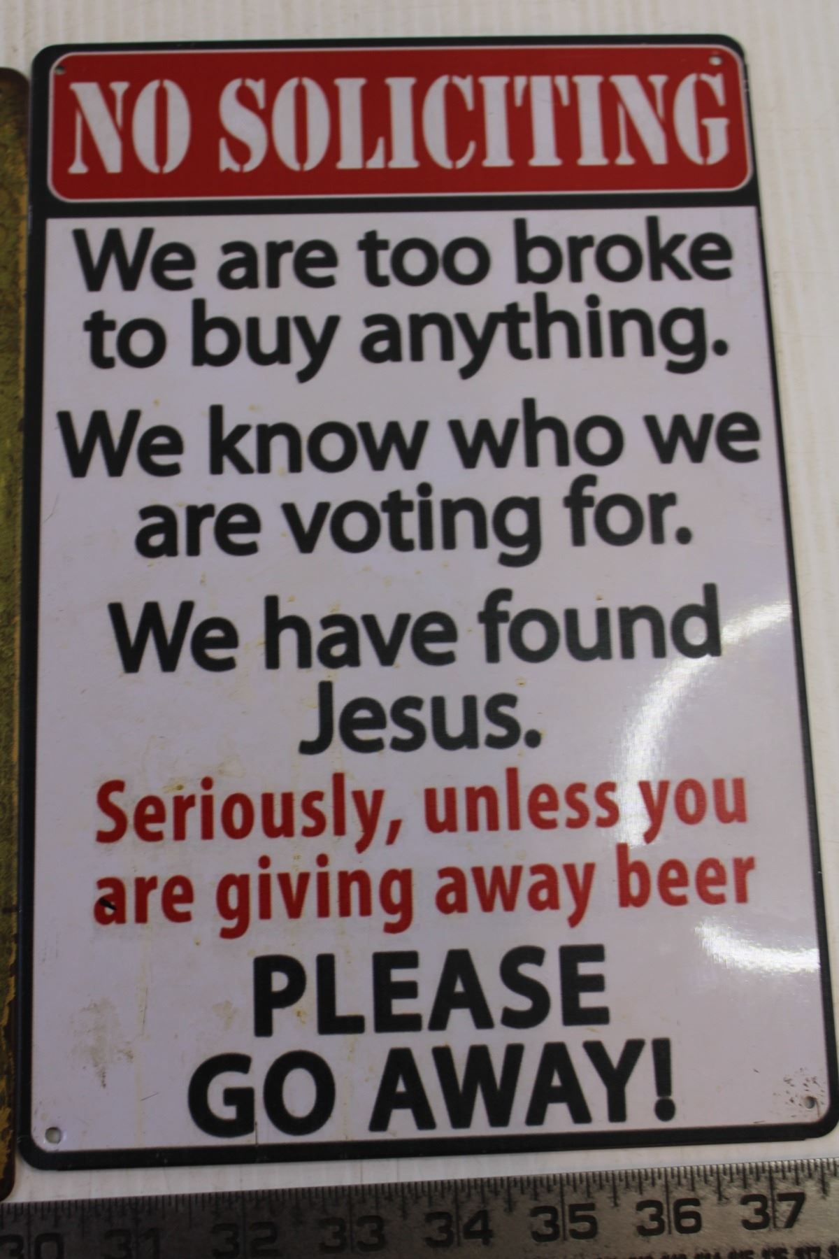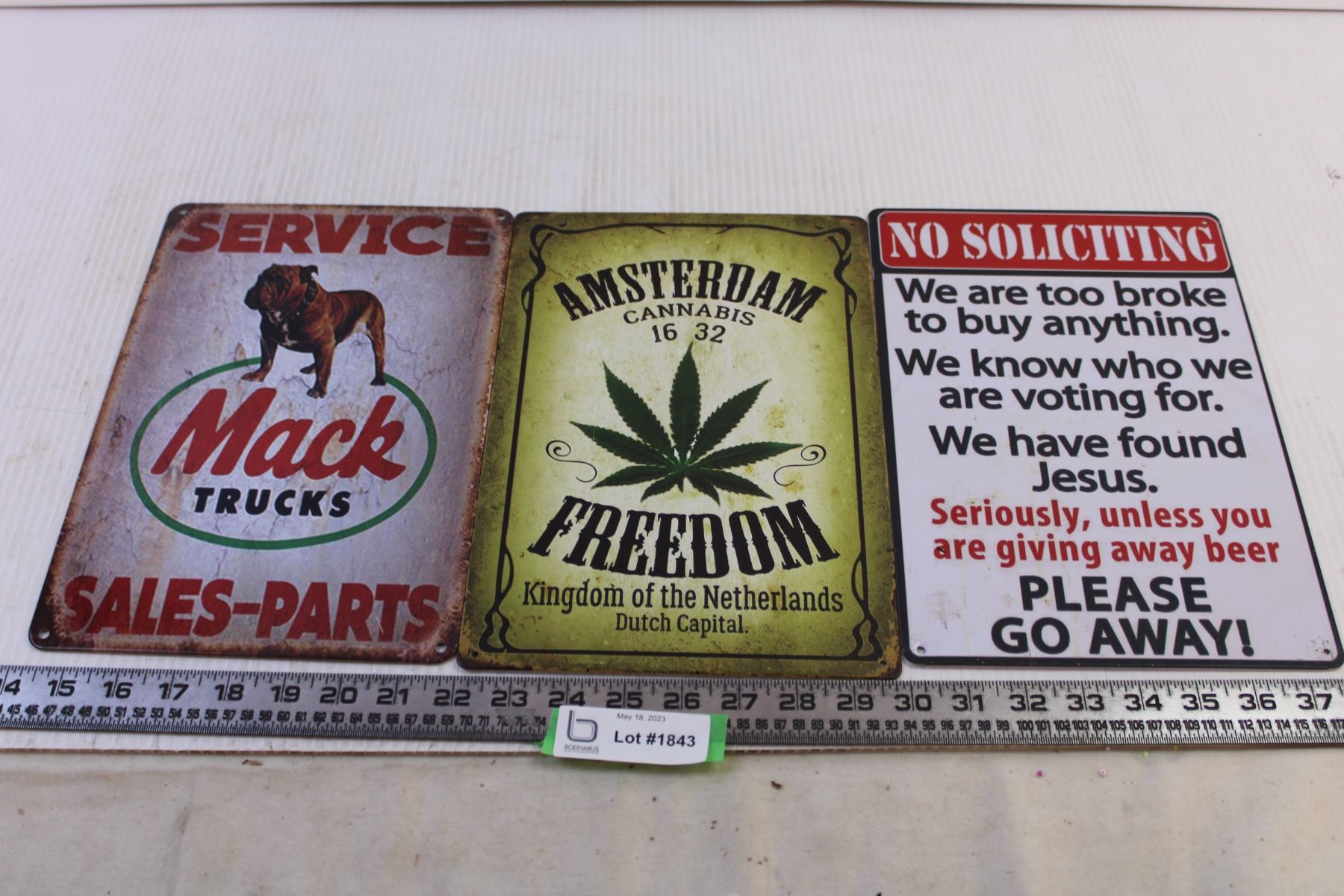 (3) Tin Man Cave Signs (Mack, THC, No Soliciting)