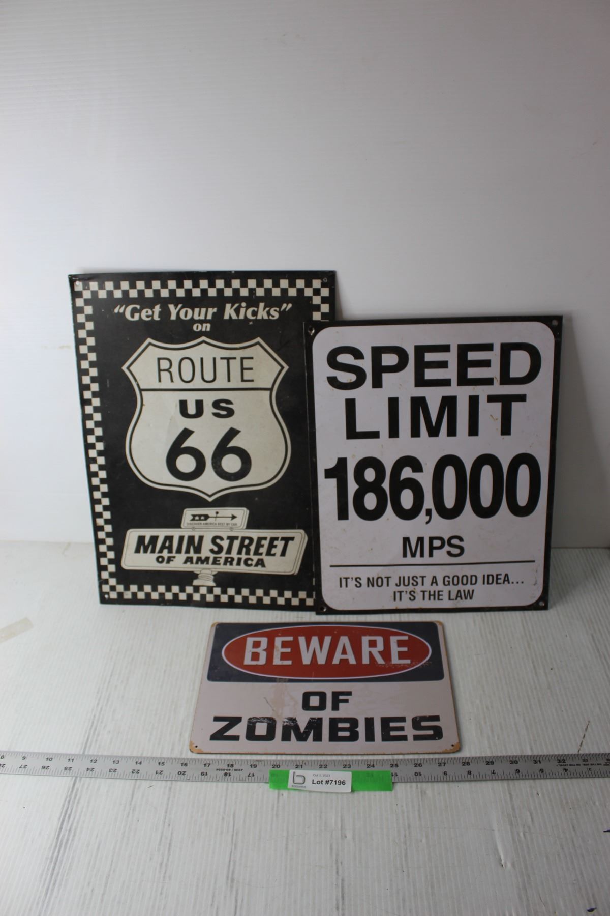 (3) Tin Signs - Route 66, Speed Limit, Zombies