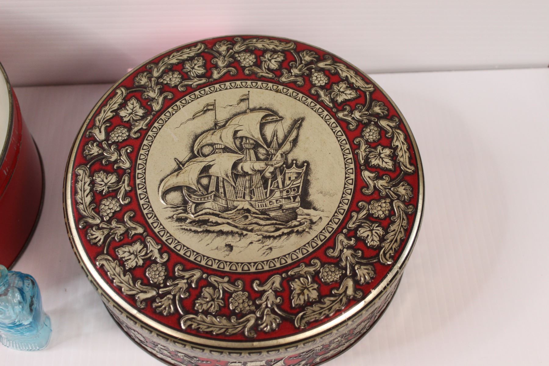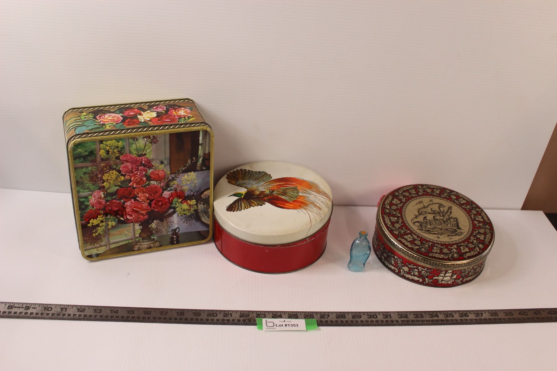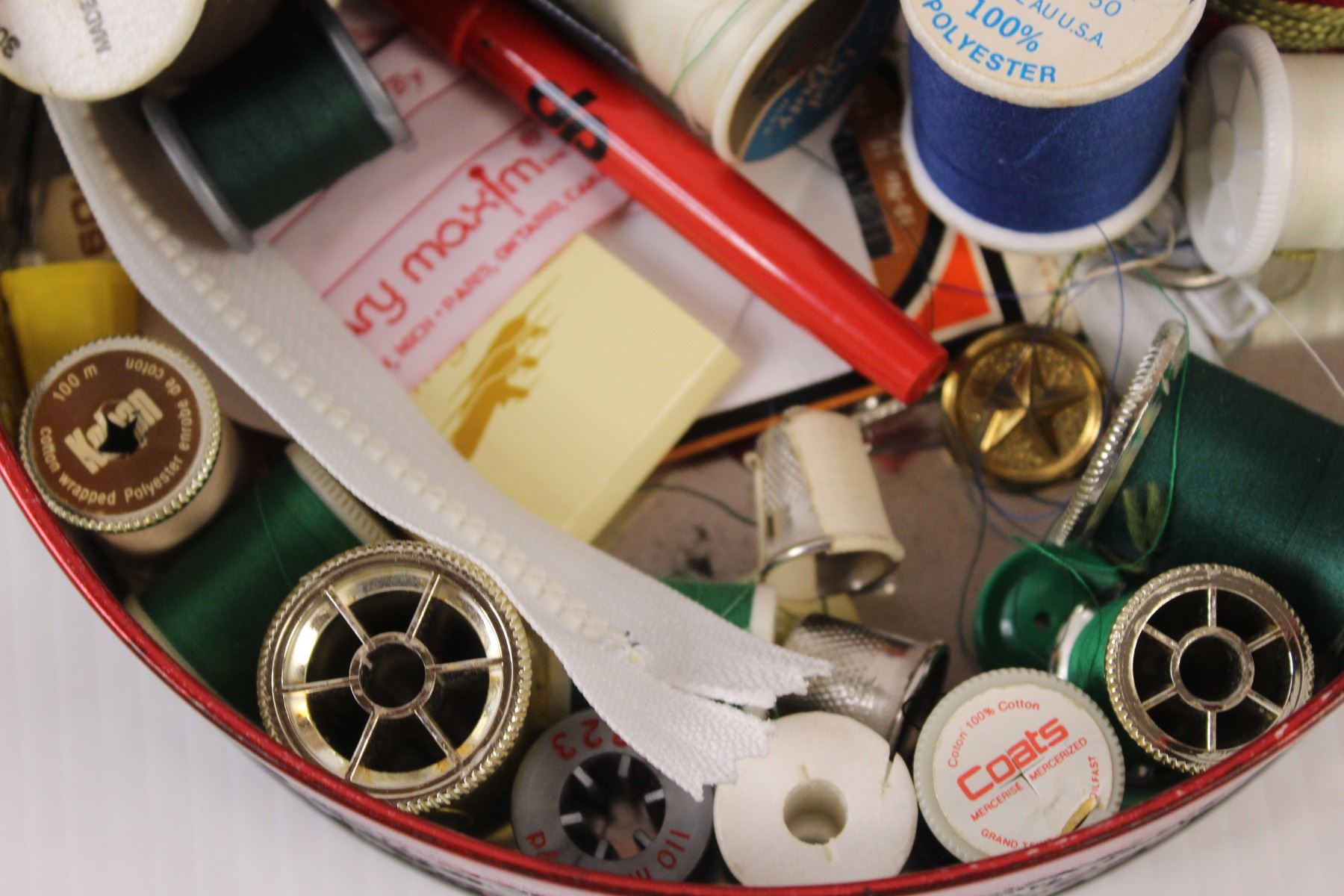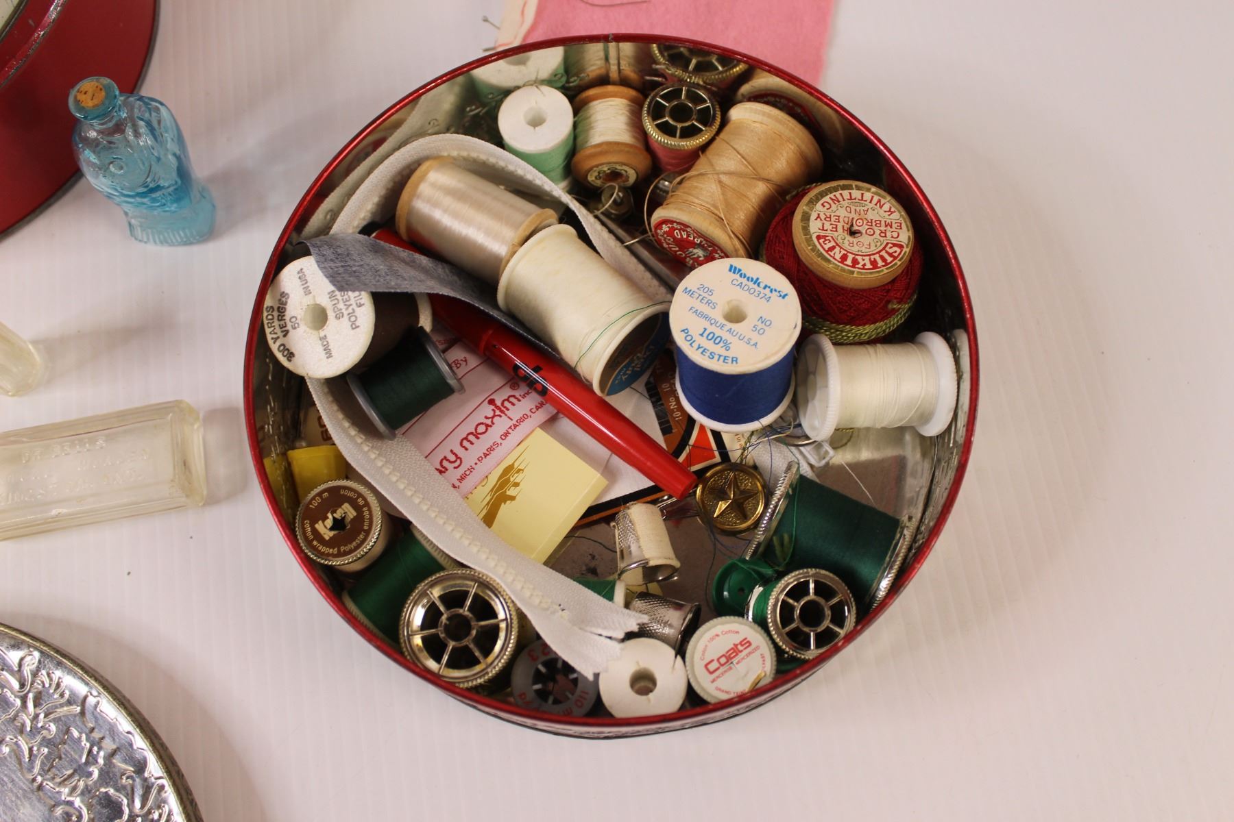 (3) Tins (One Full of Thread Bobbins & Misc.)