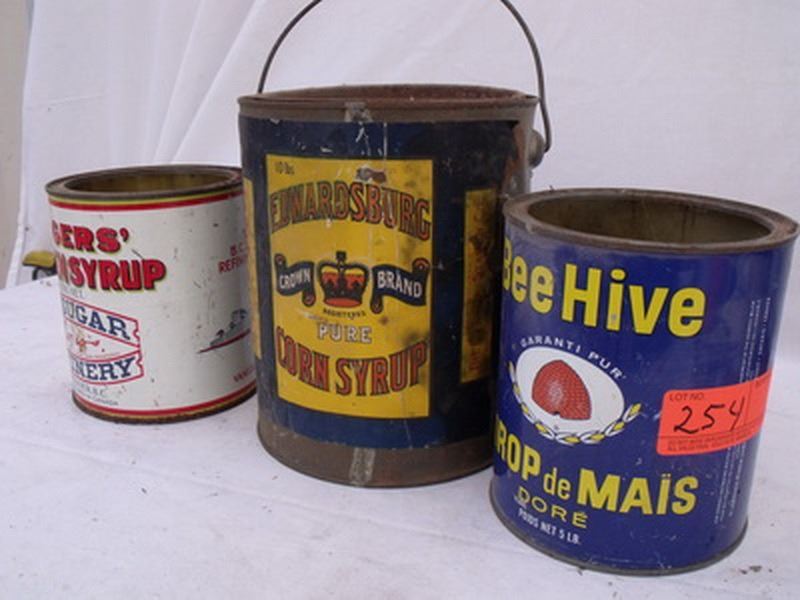 Edwards corn syrup, BeeHive Honey, Rogers Syrup lot of 3 tins