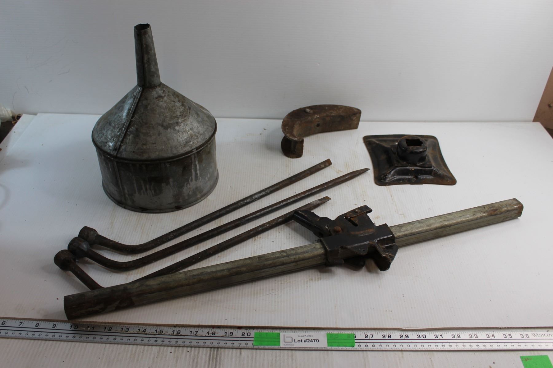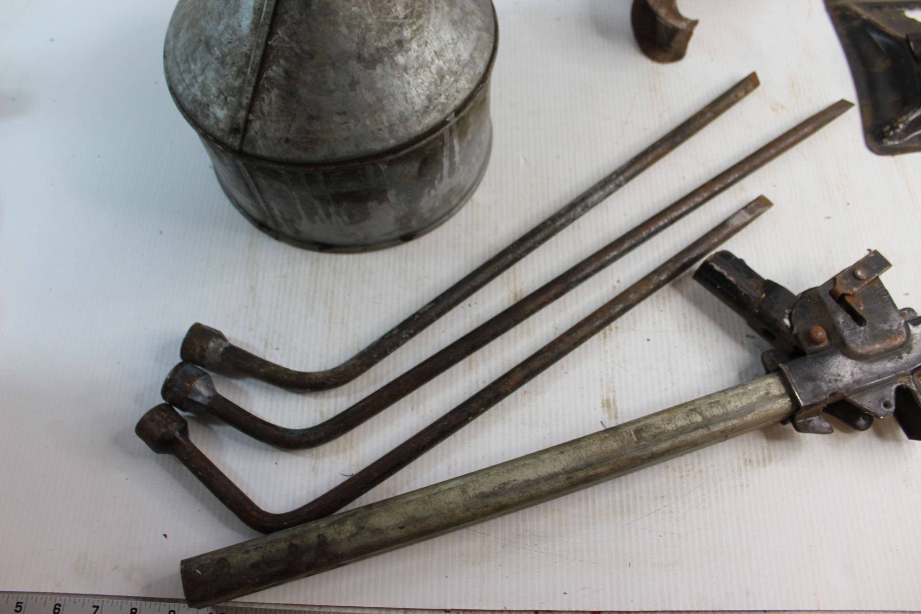 (3) Tire Wrenches, Metal Funnel and Car Jack
