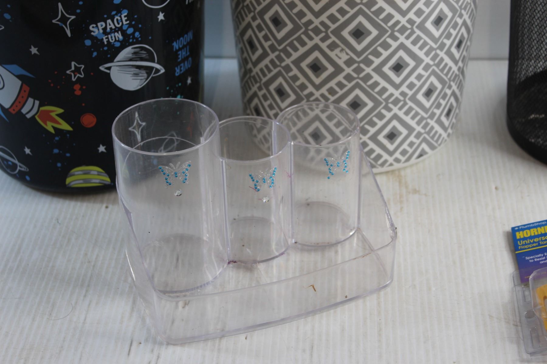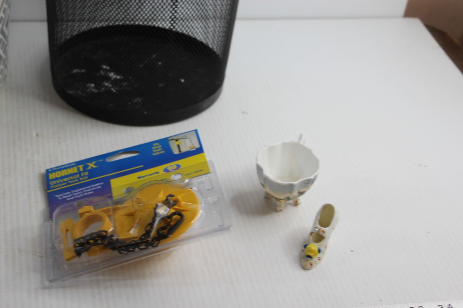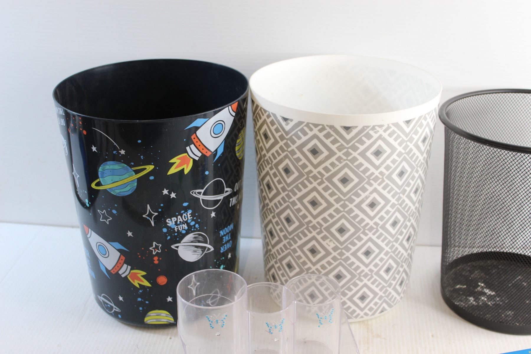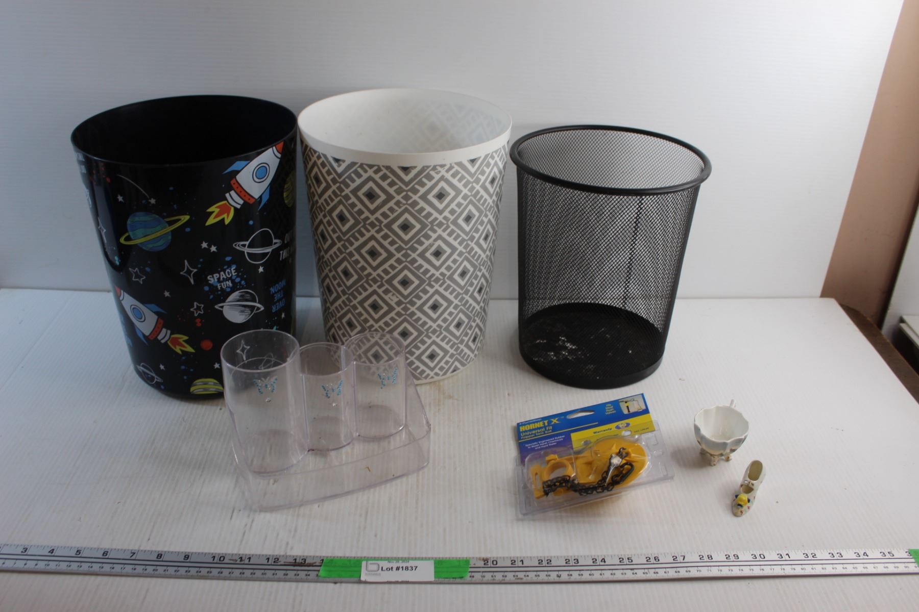 (3) Trash Bins, Universal Fit Flopper Tank Ball, Desk Organizer and Misc.