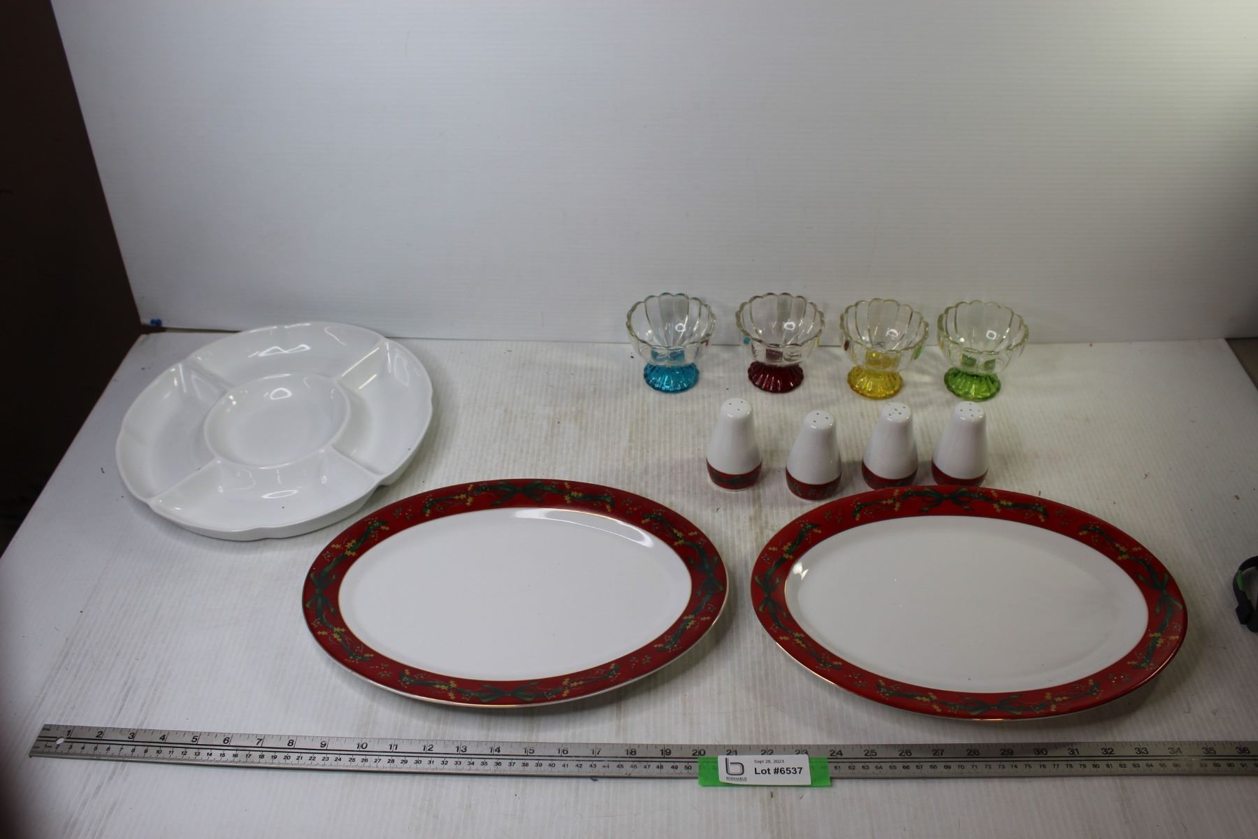 (3) Trays + (2) Pairs of Salt and Pepper Shackers + (4) Glasses