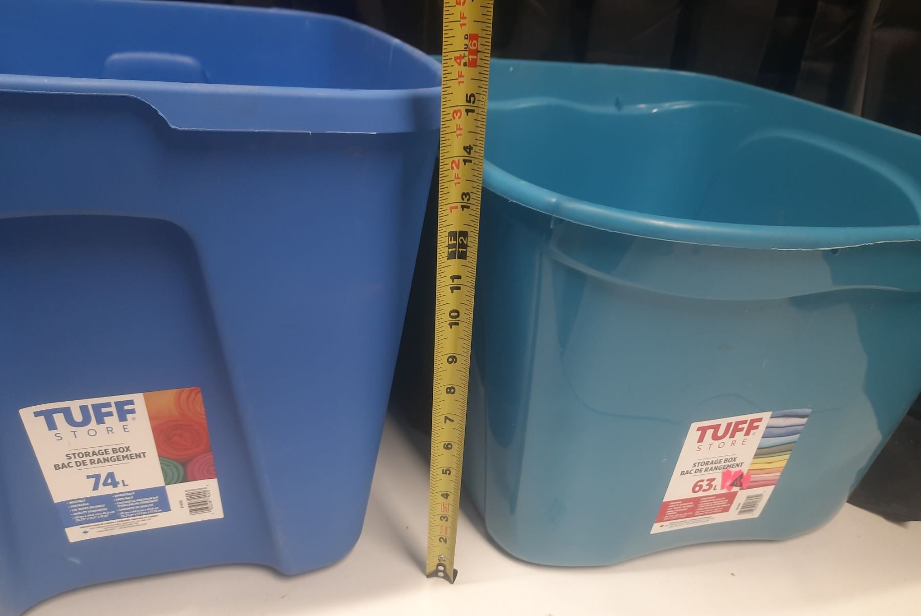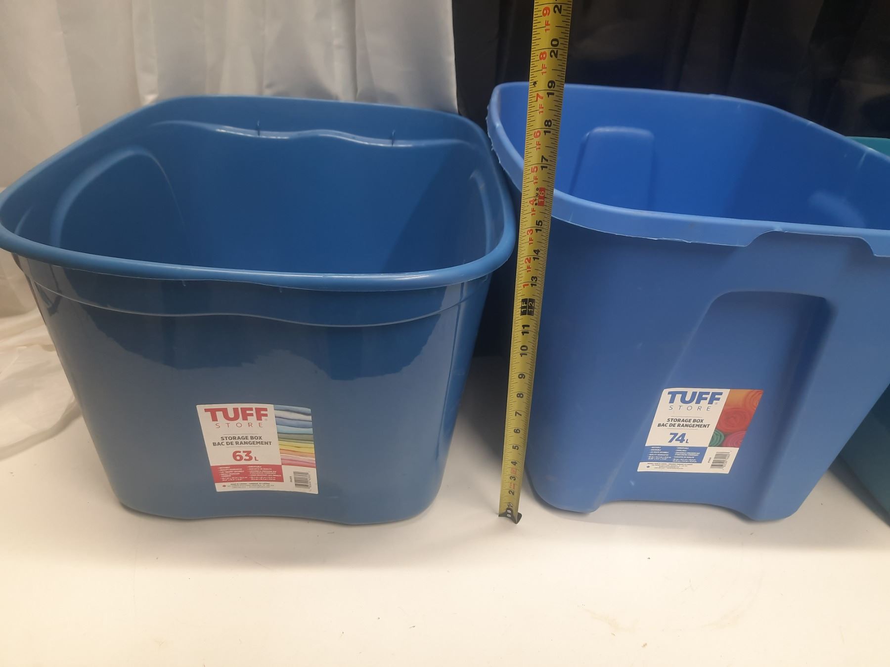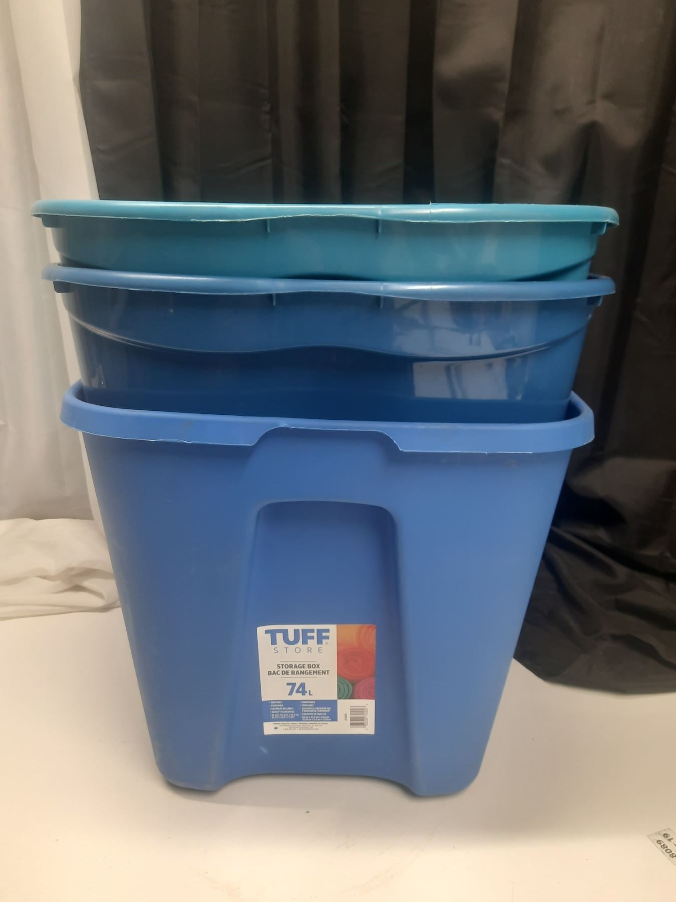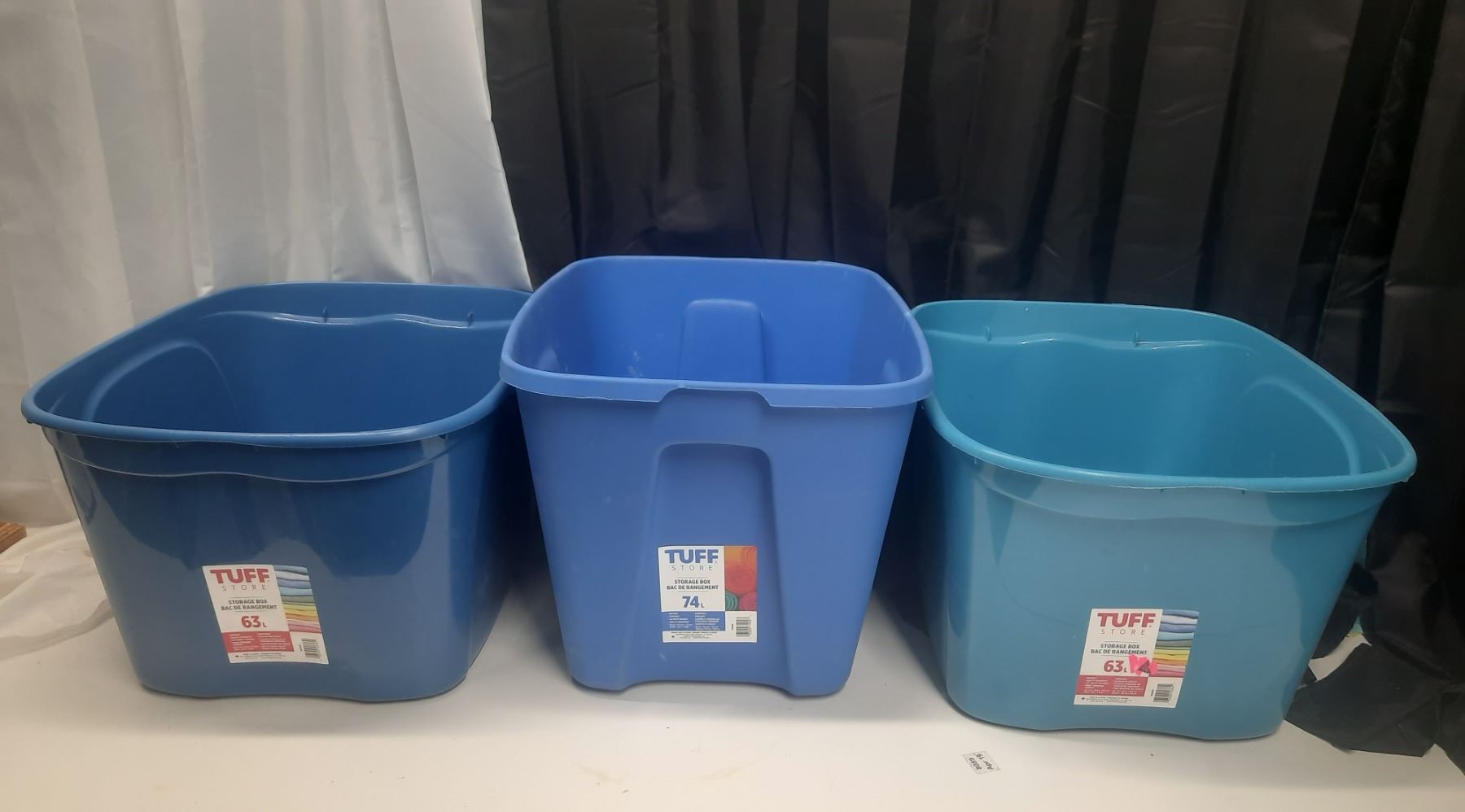 (3) Tuff Store 74L and (2) 63L Starage Containers.