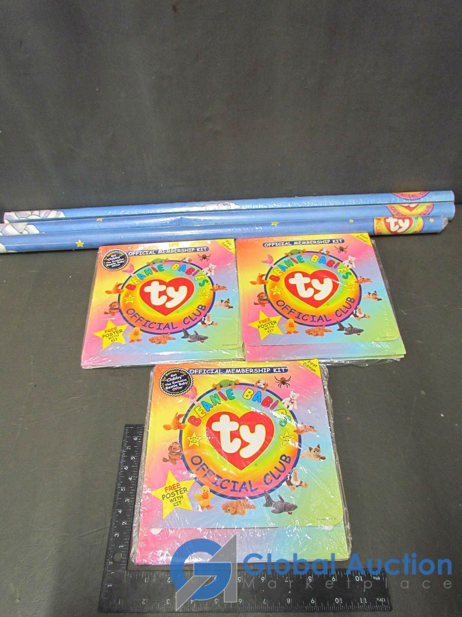 (3) Ty Beanie Babies Offical Membership Kits Complete with Poster (Un-Opened)