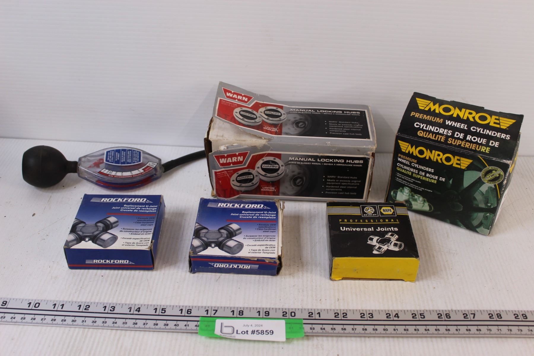 (3) U-Joints, Monroe Wheel Cylinders, Locking Hubs, Tester - as is
