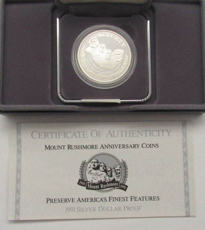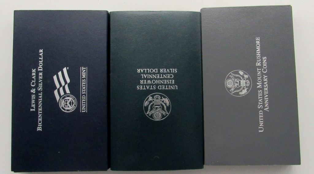 EISENHOWER PROOF $, 2004 LEWIS & CLARK PROOF $, 1991 MT RUSHMORE PROOF $ - ORIGINAL PACKAGES