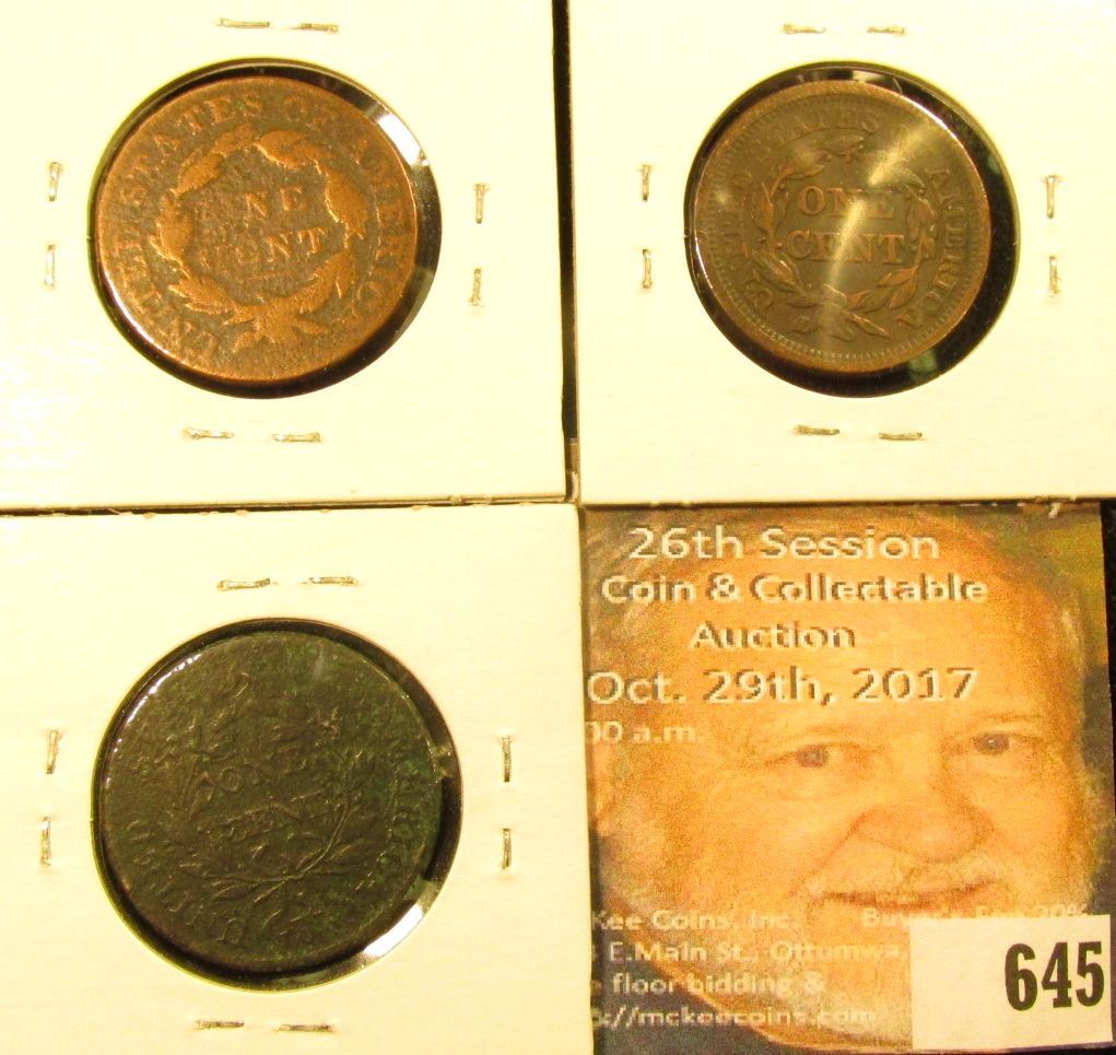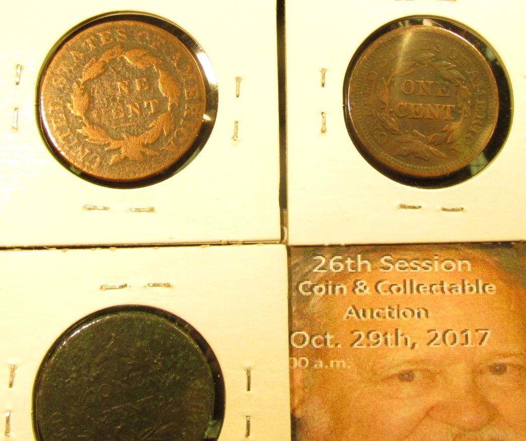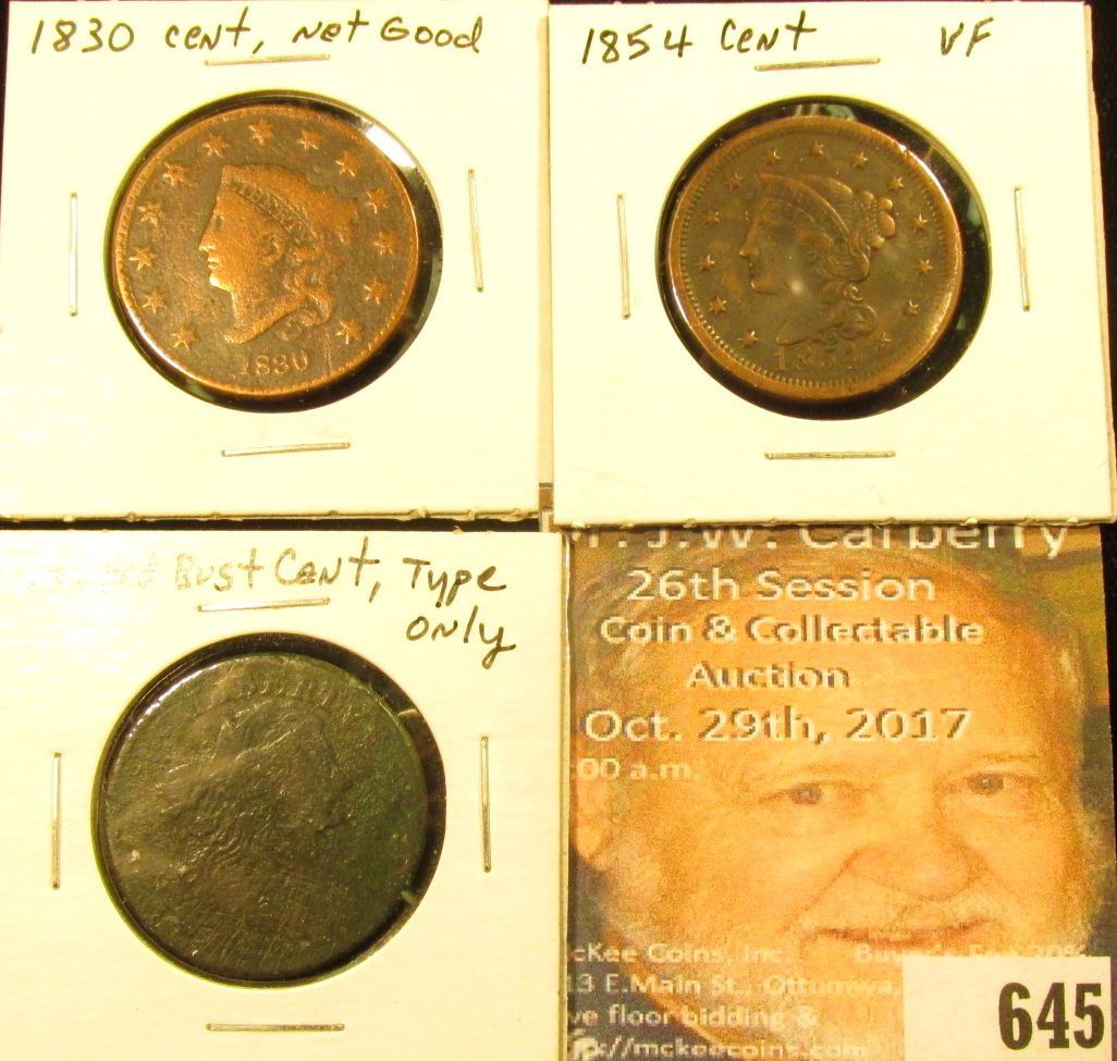 (3) U.S. Large Cents 1830 G, 1854 VF and Draped Bust Type.