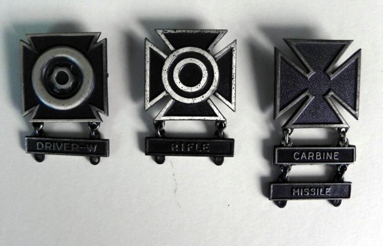 3 U.S. MARKSMAN & SHARPSHOOTER MEDALS & BARS-STERLING---ALL BUT THE ENGINEER DRIVER MEDAL ARE STERLING--DRIVER BAR IS STERLING