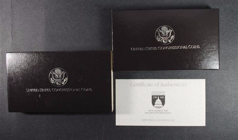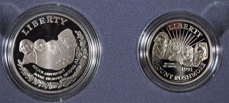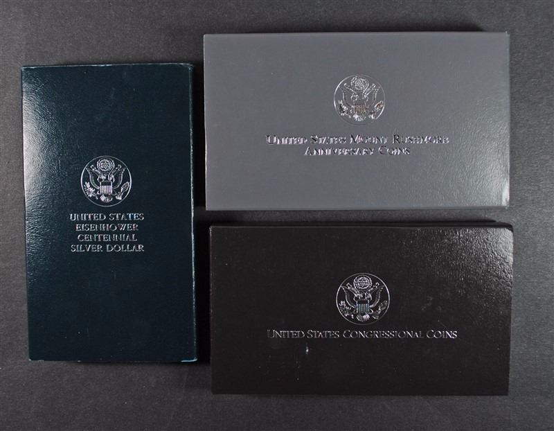 3 - U.S. MINT COMMEMORATIVE SETS - '91 MT RUSHMORE PRF, '89 CONGRESSIONAL PRF &