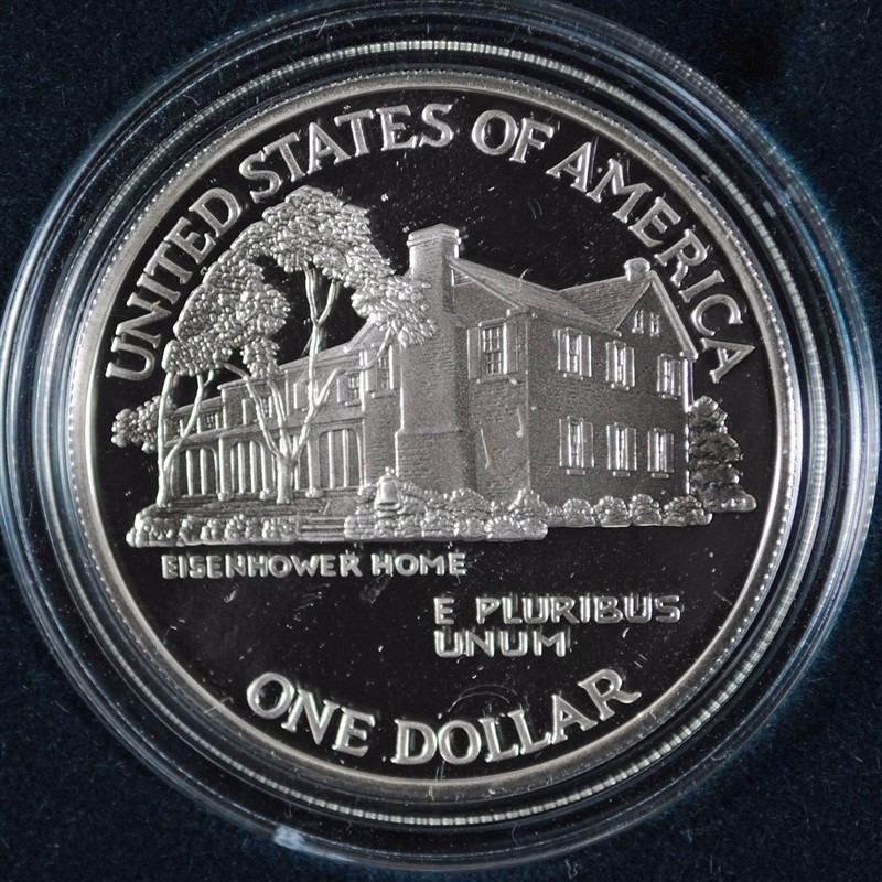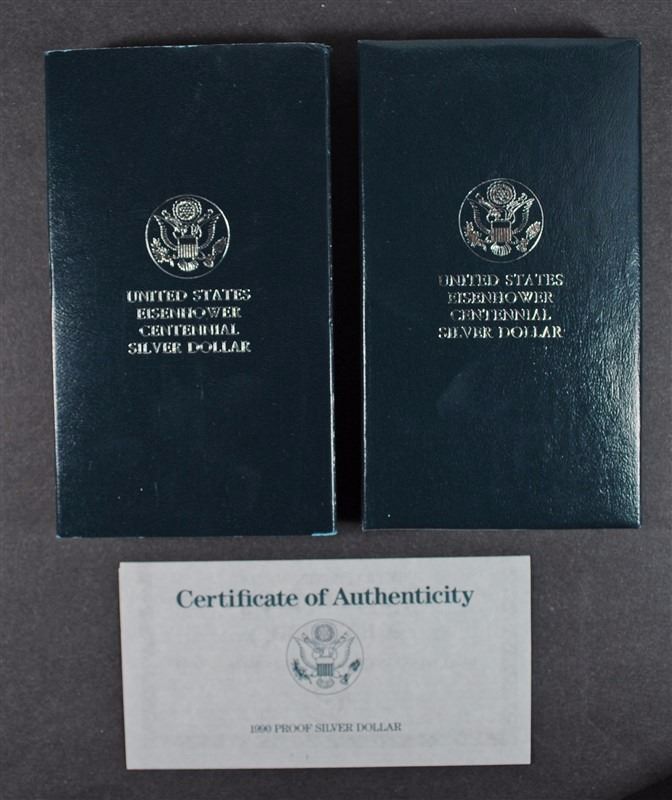 90 EISENHOWER PROOF SILVER DOLLAR, ALL ORIGINAL BOX / CERT - ESTIMATE $150-$170