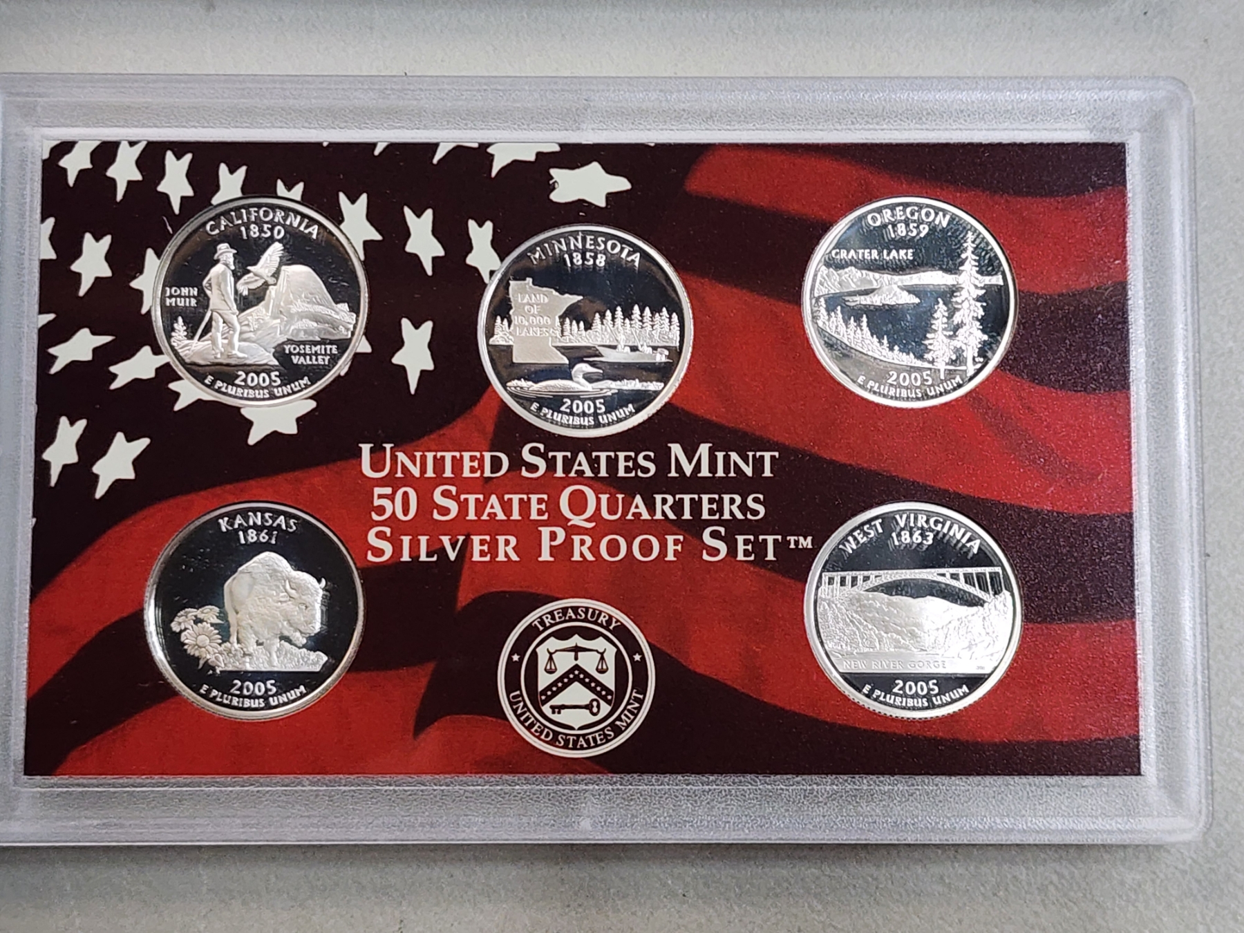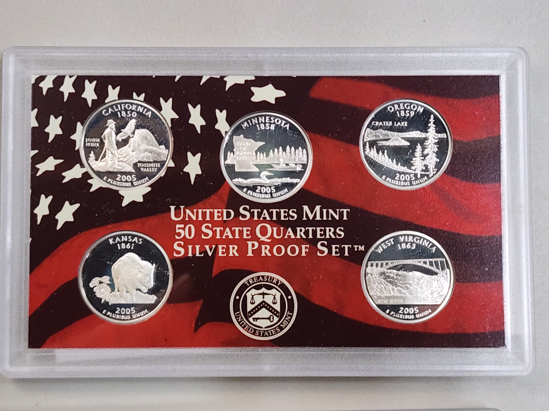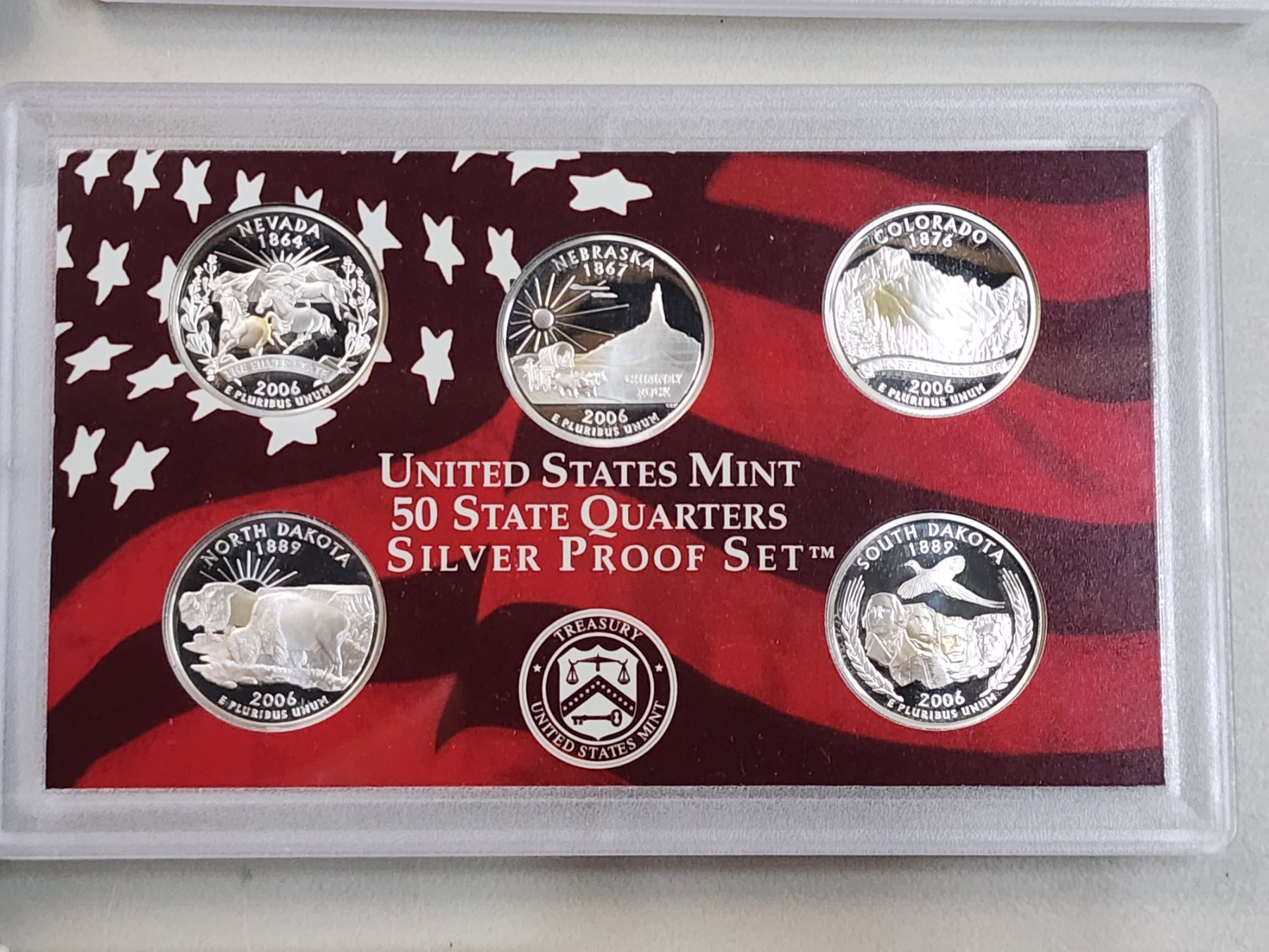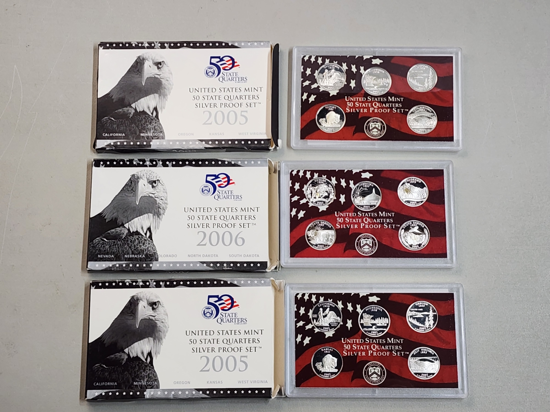 (3) U.S. Mint 50 State Quarters Silver Proof Sets: 2005, 2005, 2006